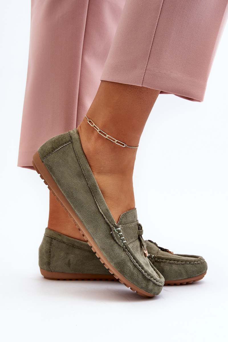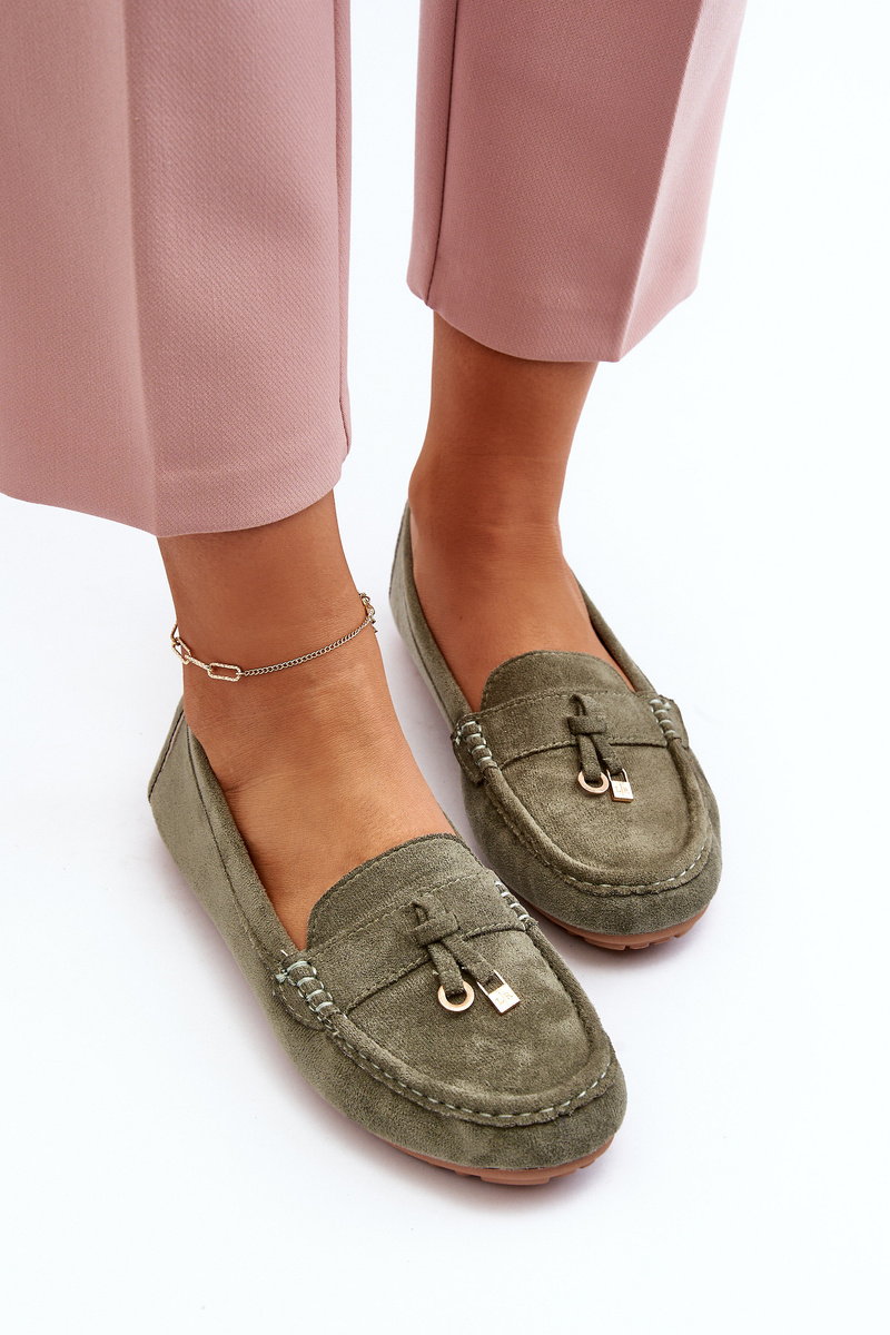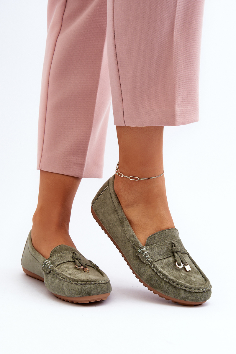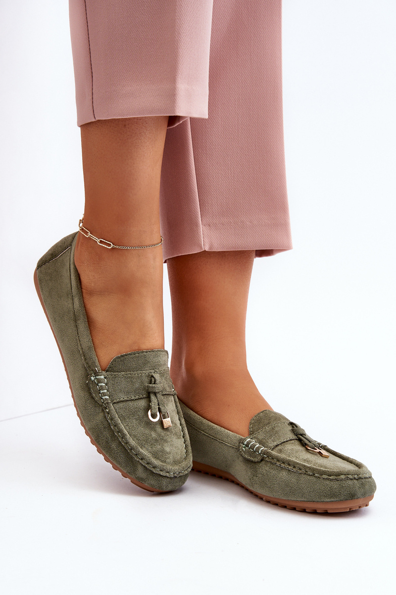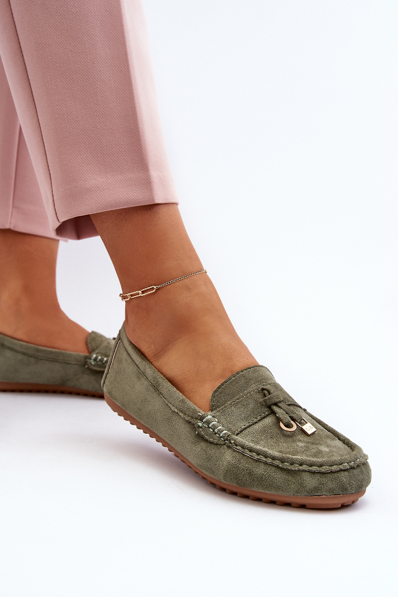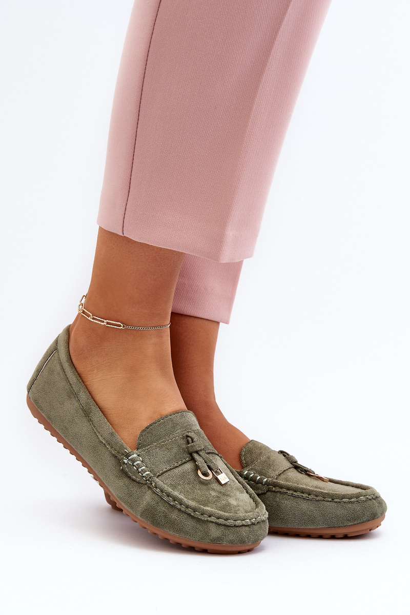Damskie Zamszowe Klasyczne Mokasyny Zielone Ontala