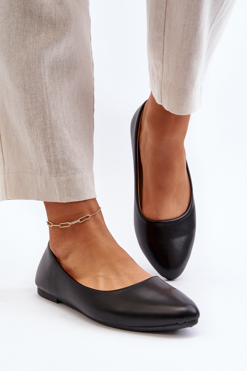 Eko Skórzane Baleriny Damskie Czarne Tindomiel