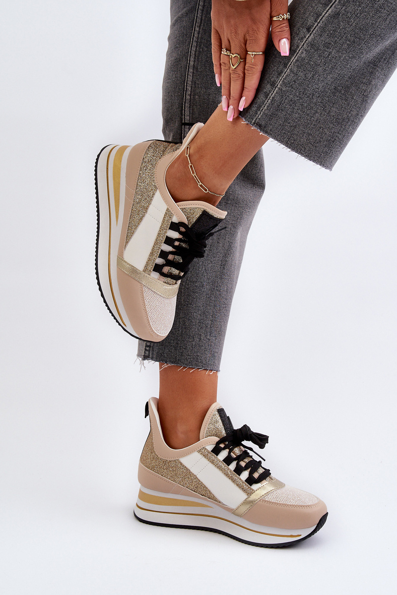 Damskie Sneakersy Na Koturnie I Platformie Z Brokatem Złote Rafani