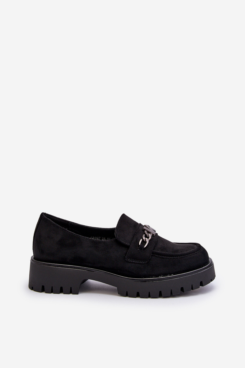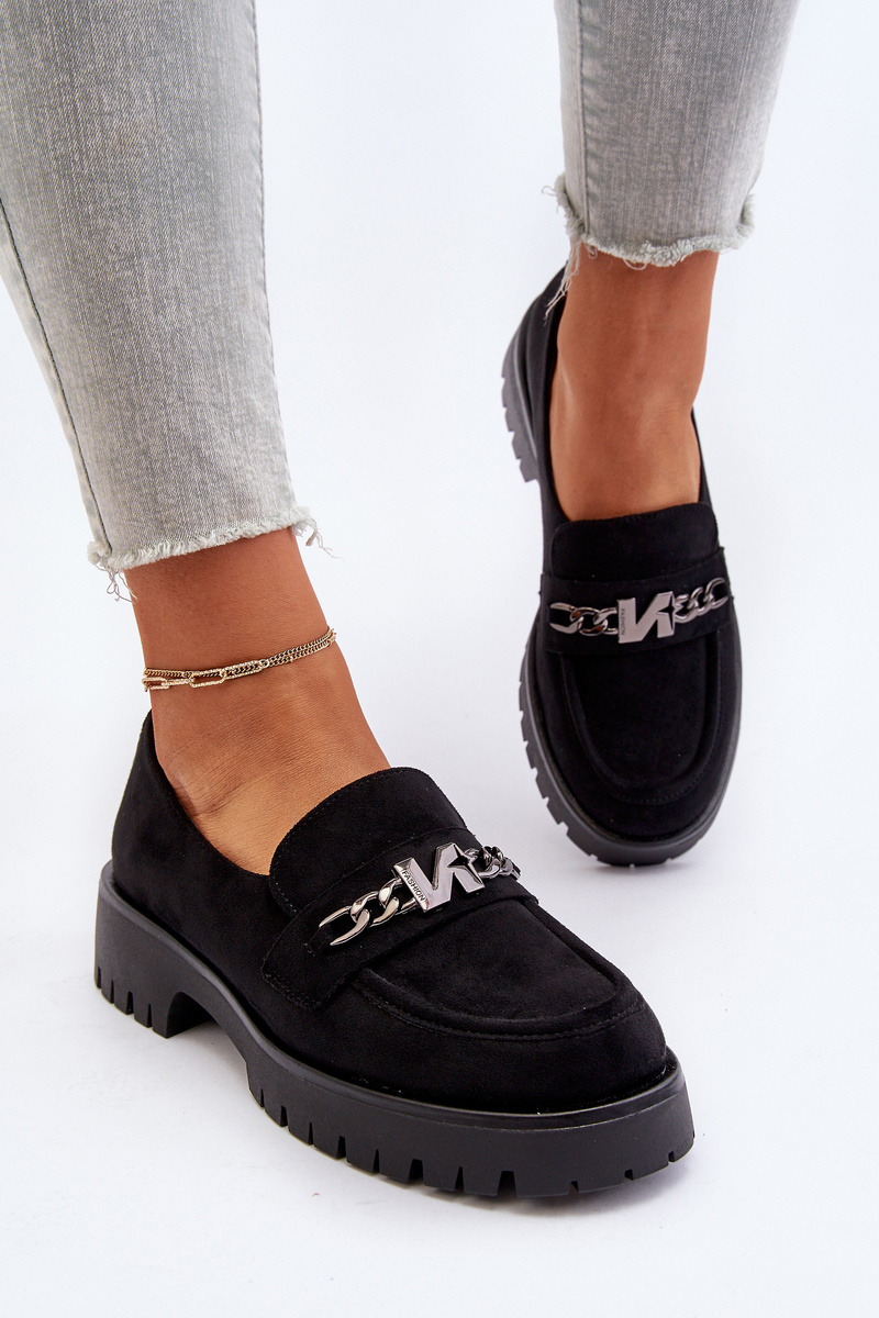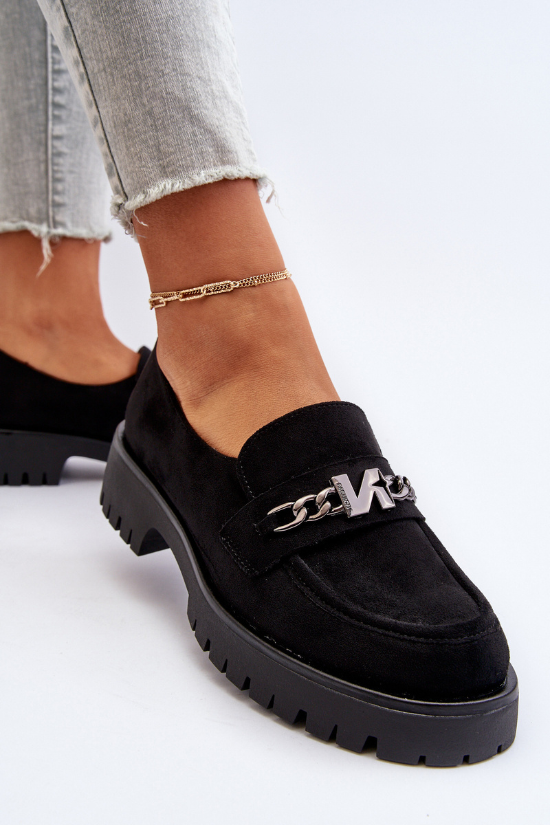 Zamszowe Mokasyny Damskie Z Ozdobą Czarne Loraleima