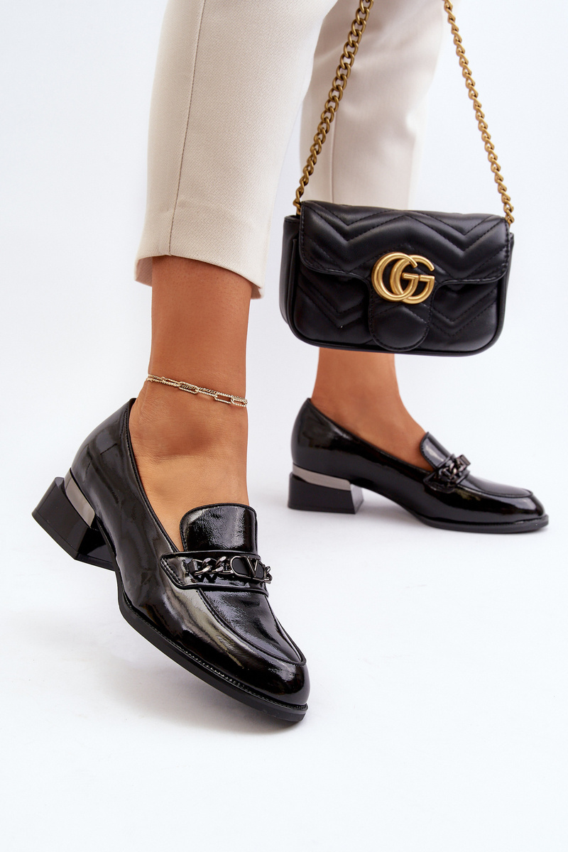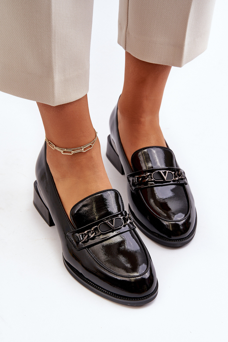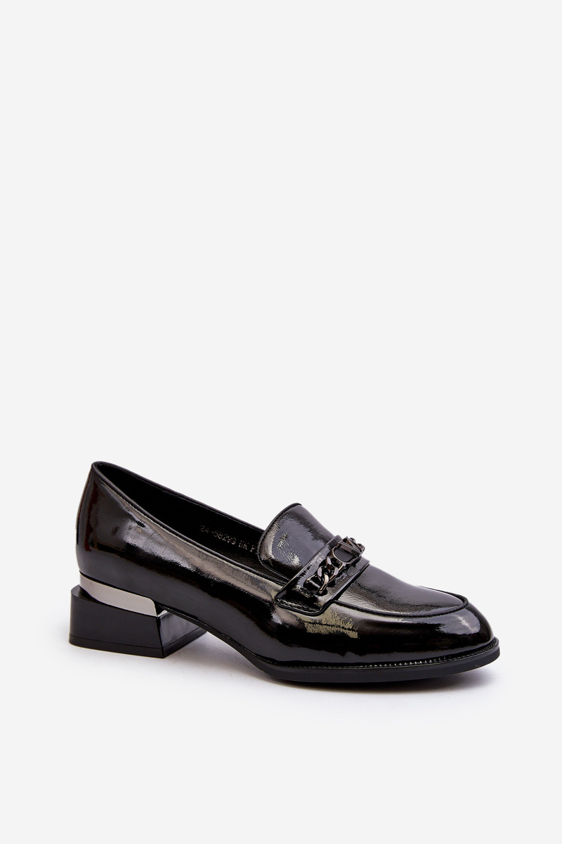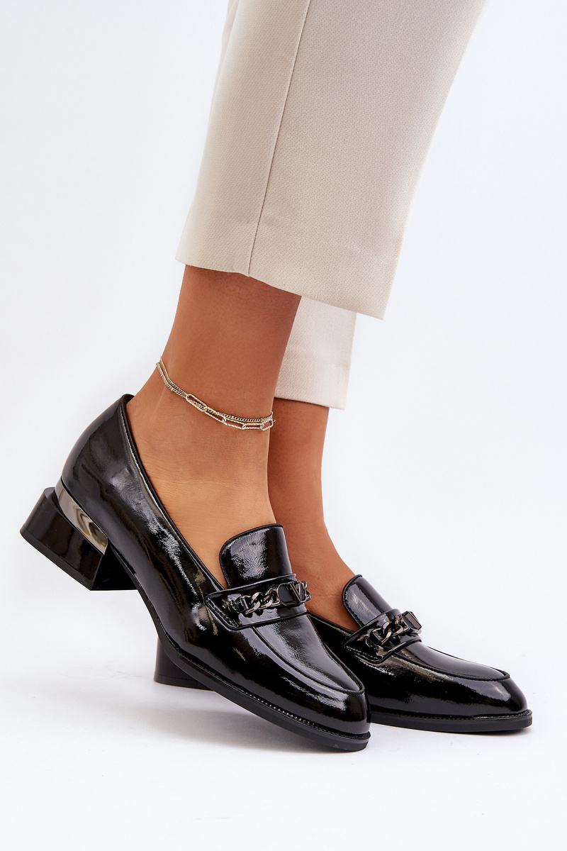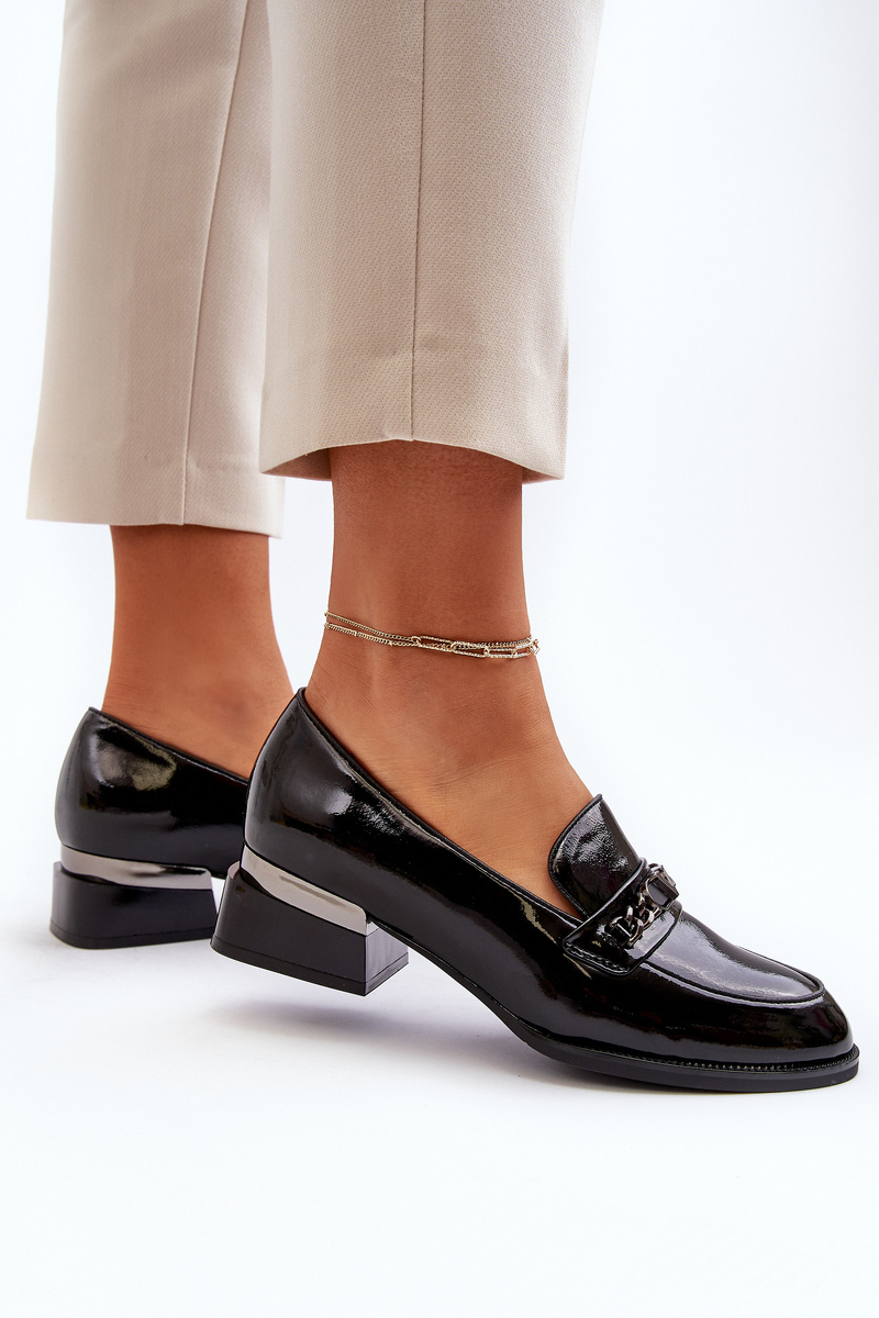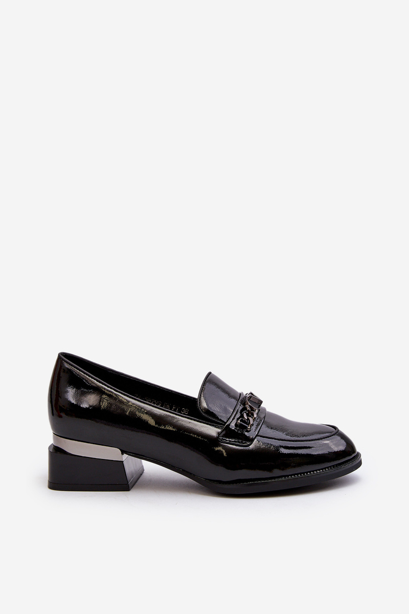 Damskie Lakierowane Półbuty Na Niskim Obcasie Czarne Albreide