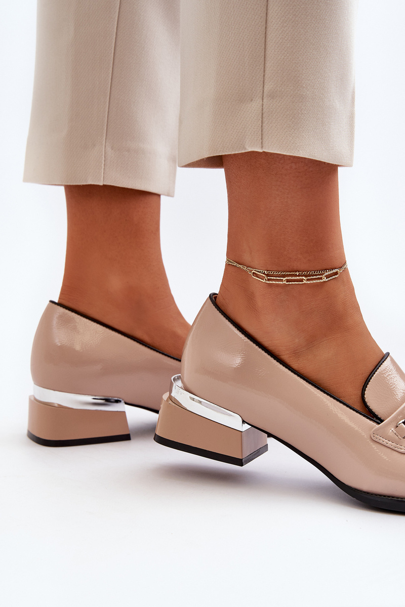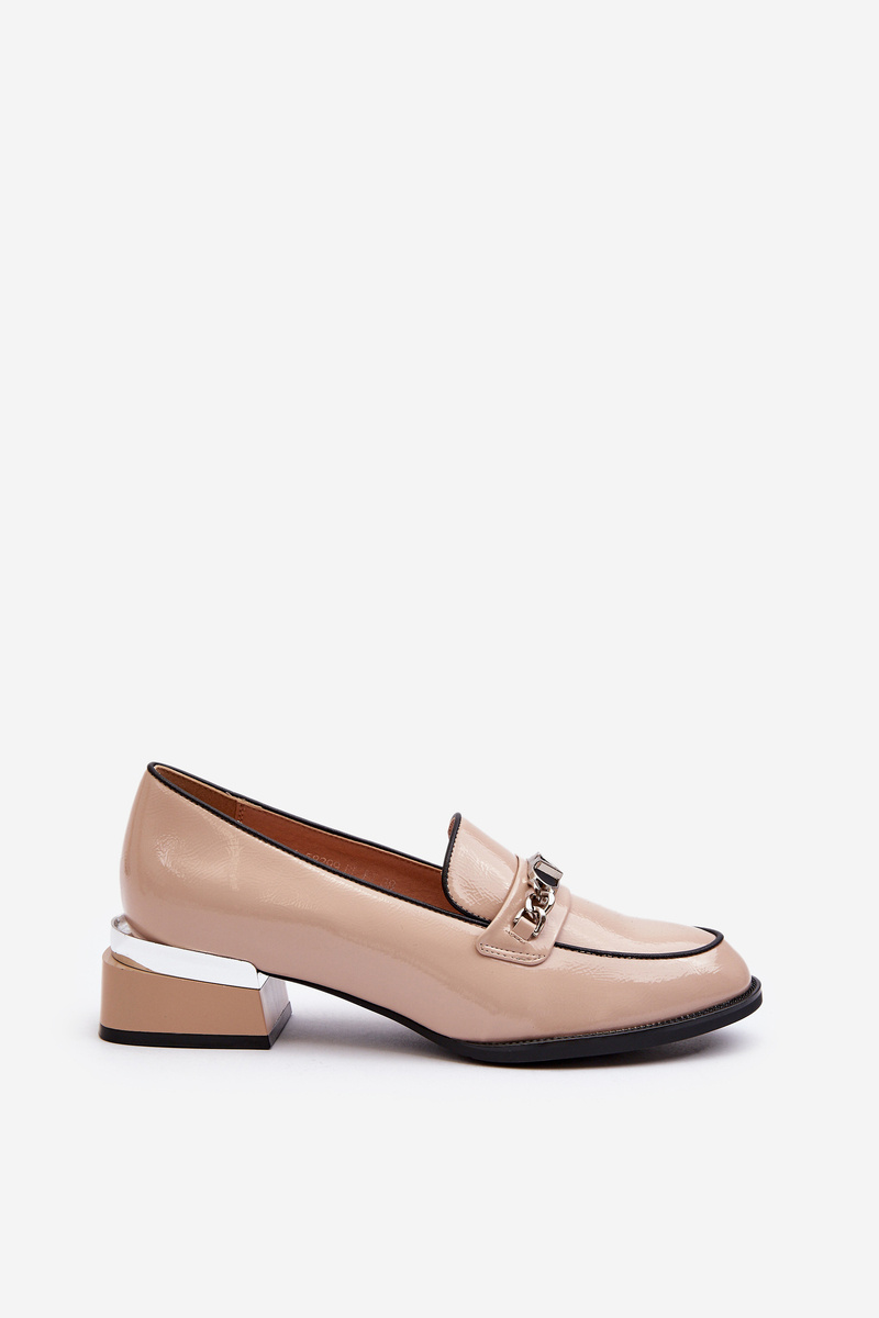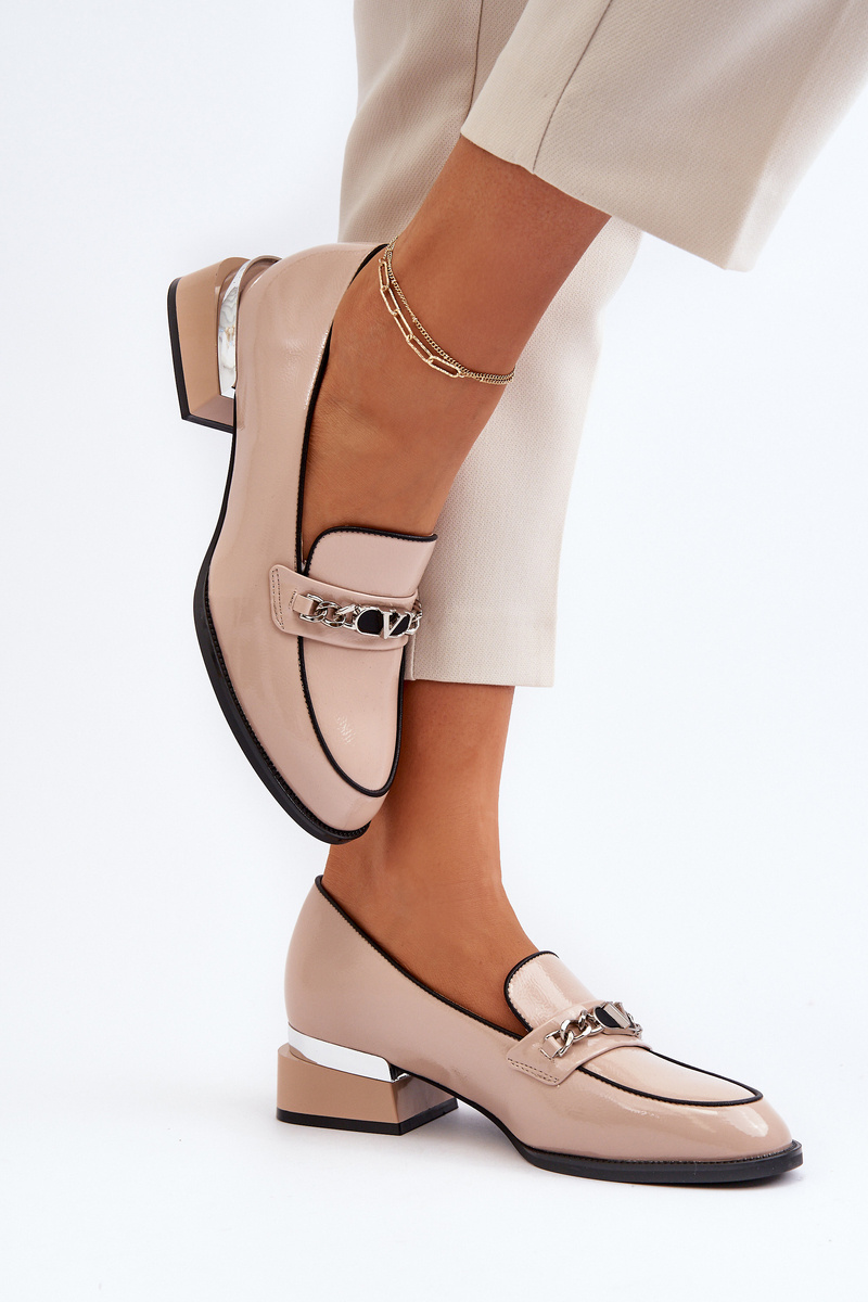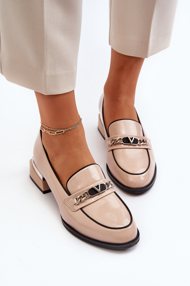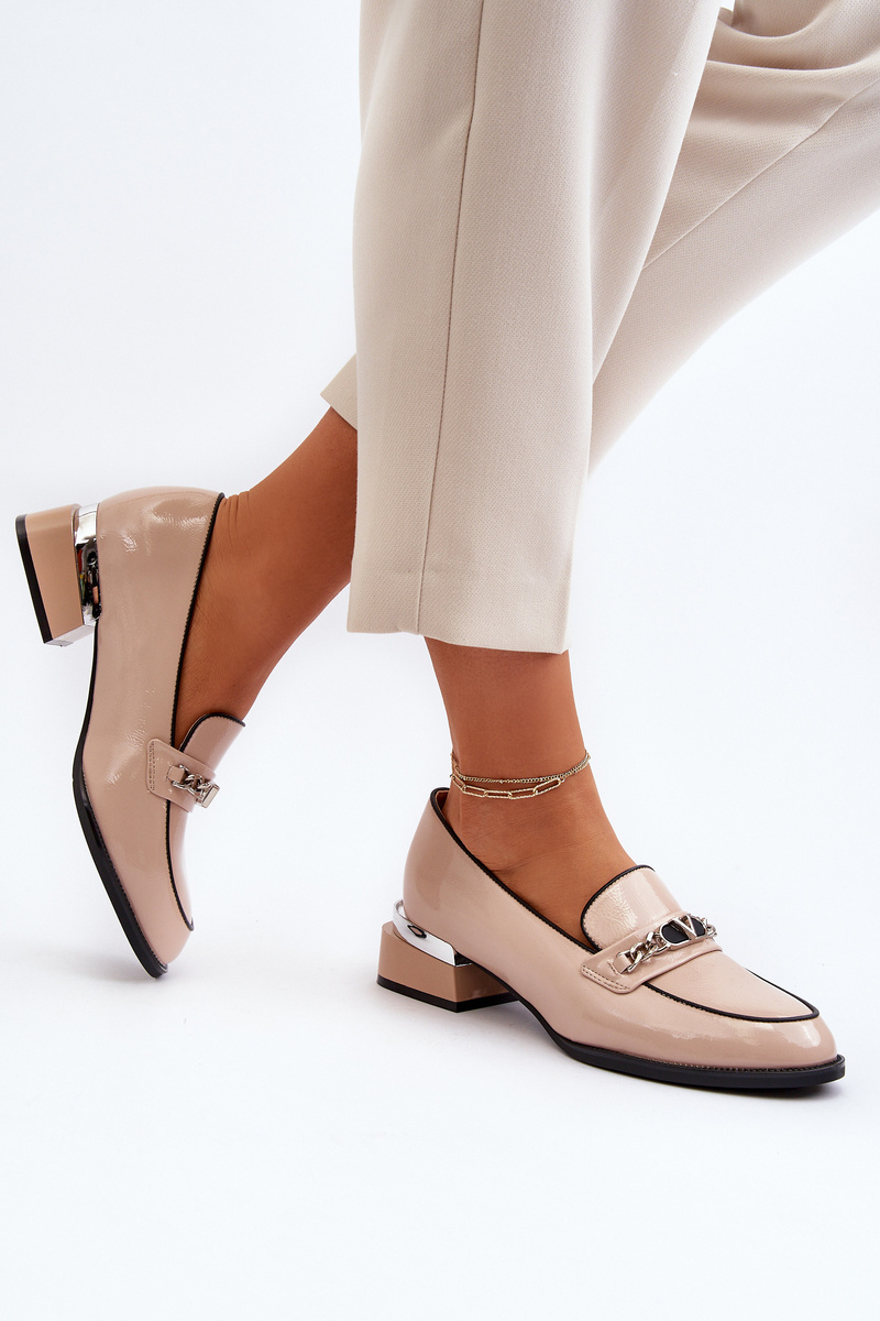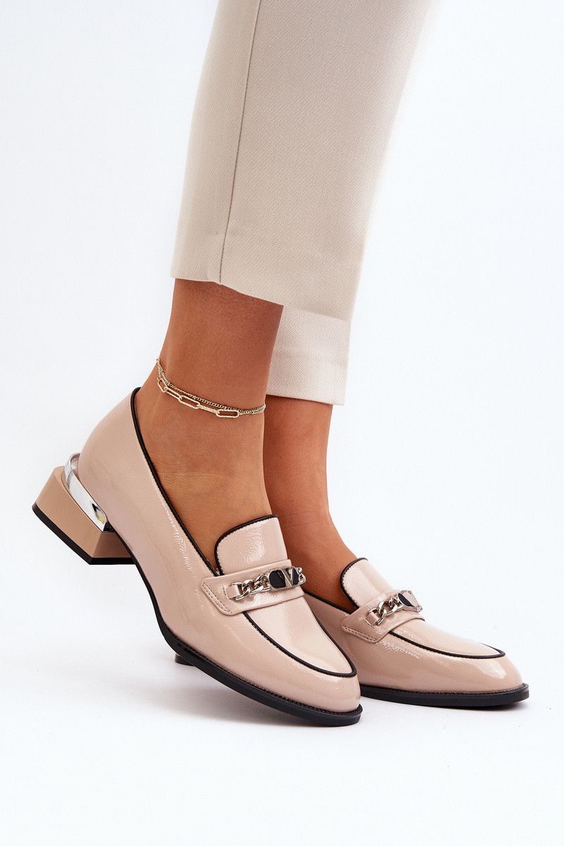 Damskie Lakierowane Półbuty Na Niskim Obcasie Beżowe Albreide