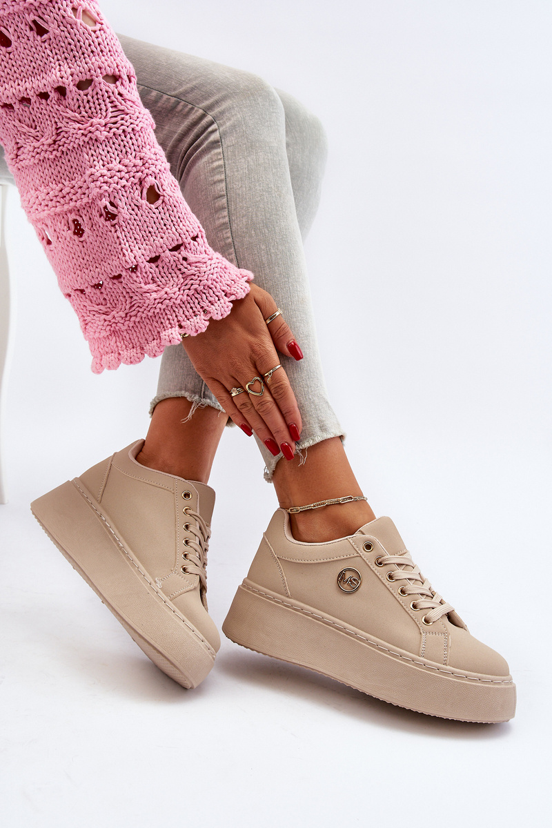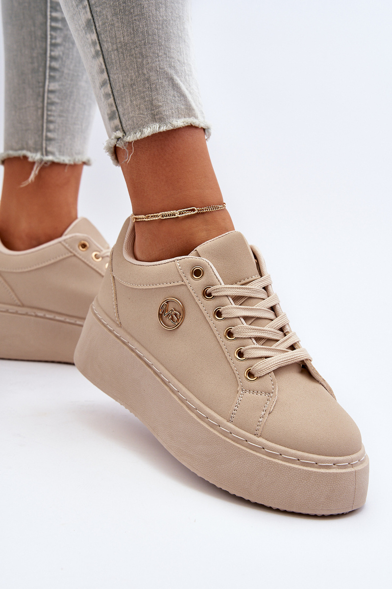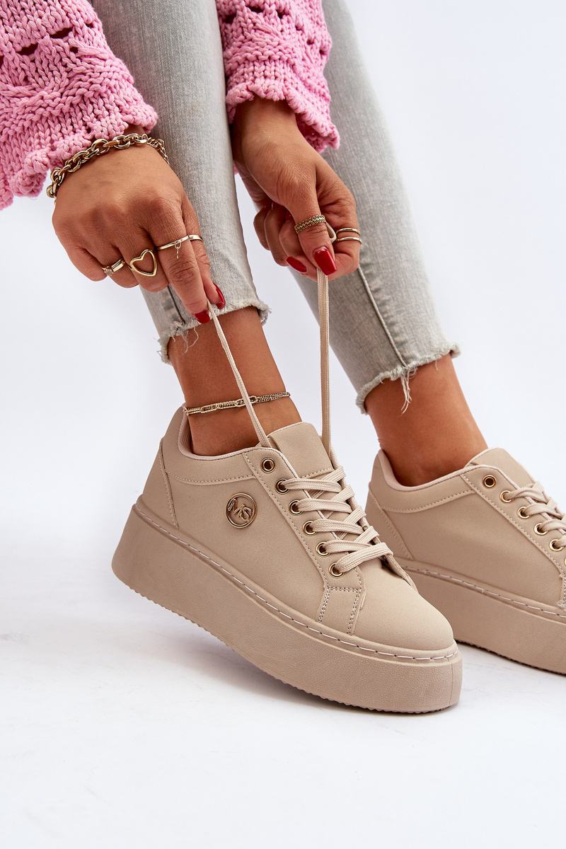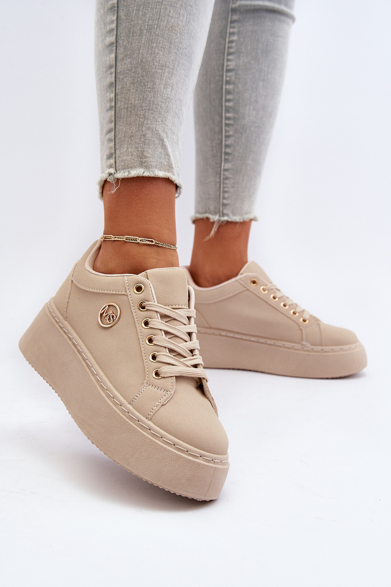 Niskie Sneakersy Damskie Na Platformie Beżowe Telirra