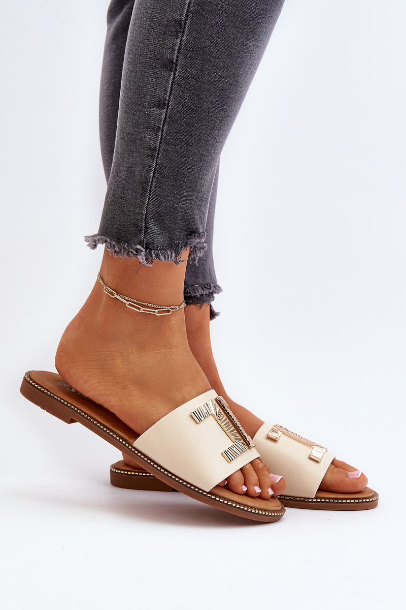 Klapki Damskie Z Ozdobą Beżowe Ollavia