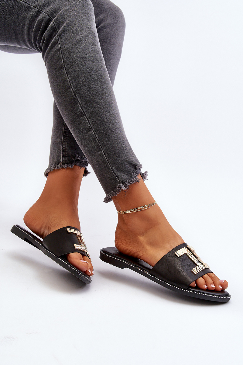 Klapki Damskie Z Ozdobą Czarne Ollavia