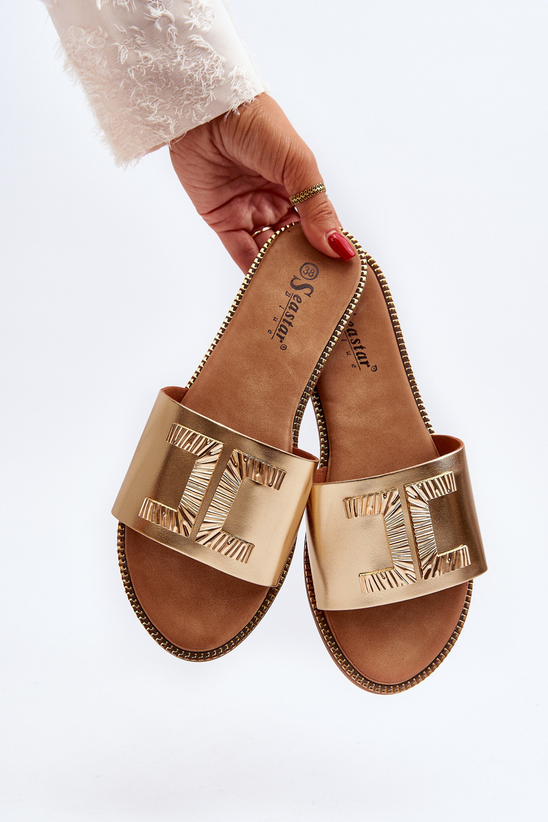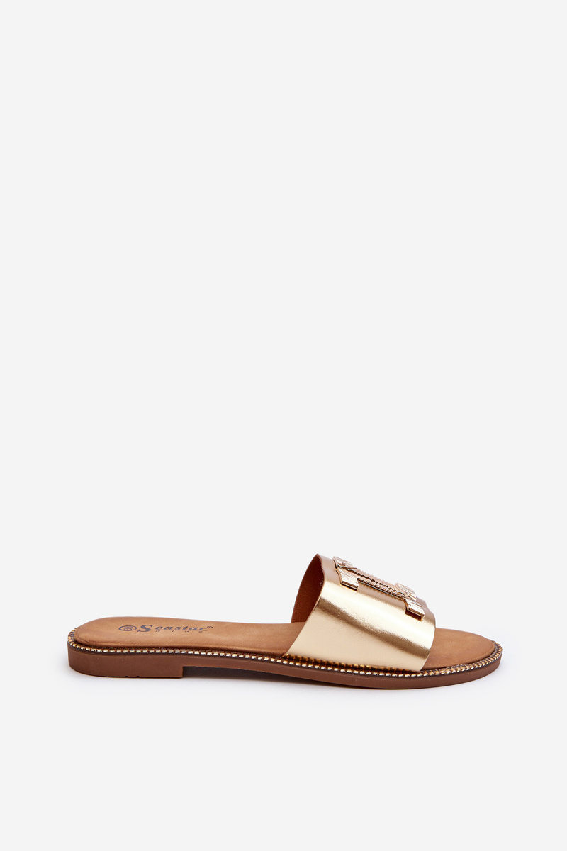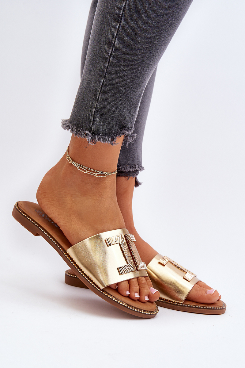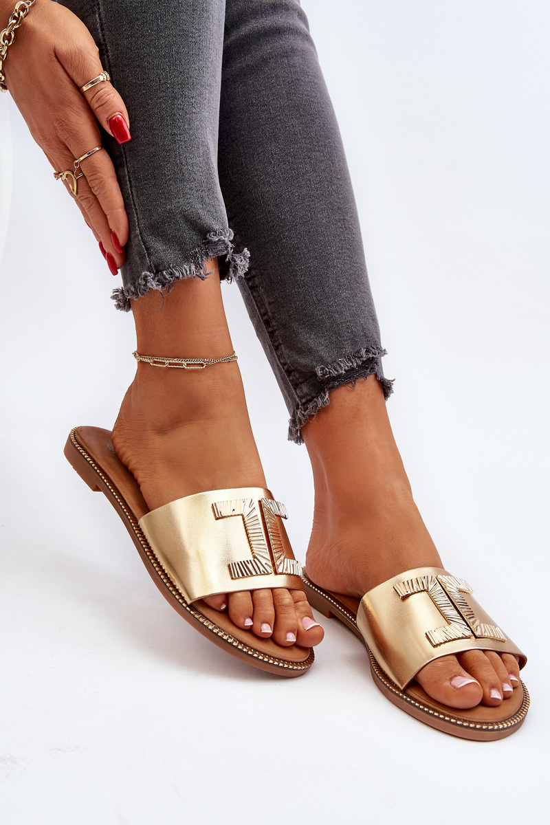 Klapki Damskie Z Ozdobą Złote Ollavia