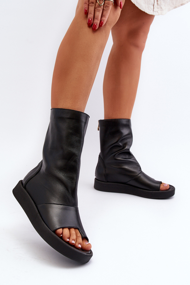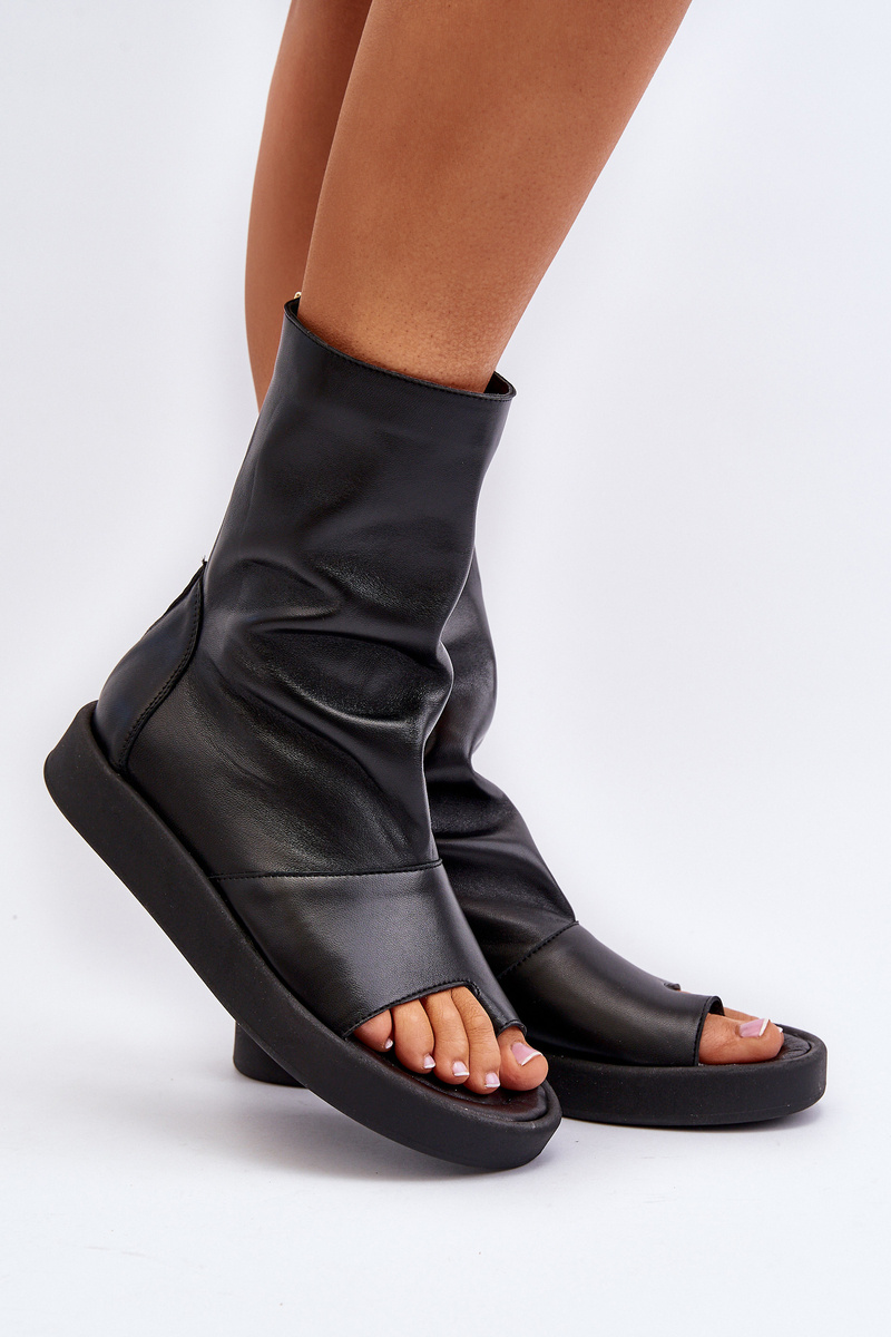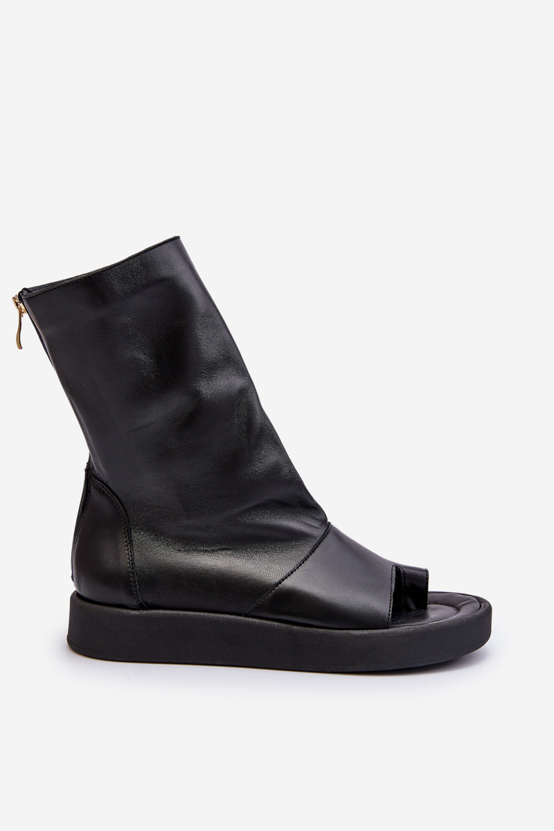 Zazoo 3441 Sandały Damskie Skórzane Z Cholewka Czarne