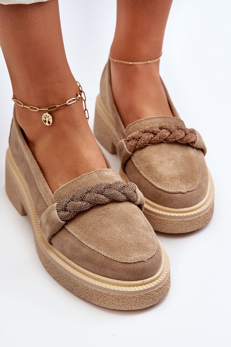 Zazoo 3429/W Damskie Zamszowe Mokasyny Z Ozdobą Beżowe