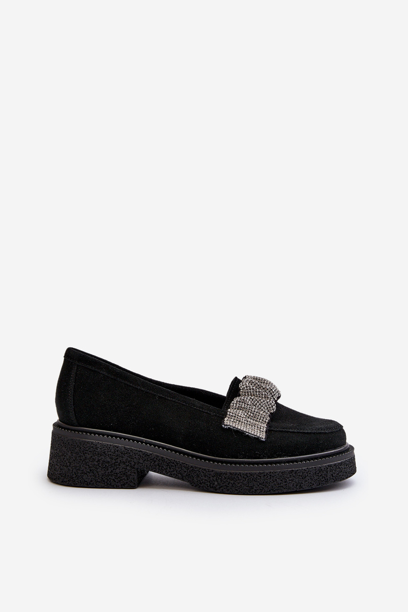 Zazoo 3419 Mokasyny Damskie Zamszowe Z Ozdobnym Paseczkiem Czarne
