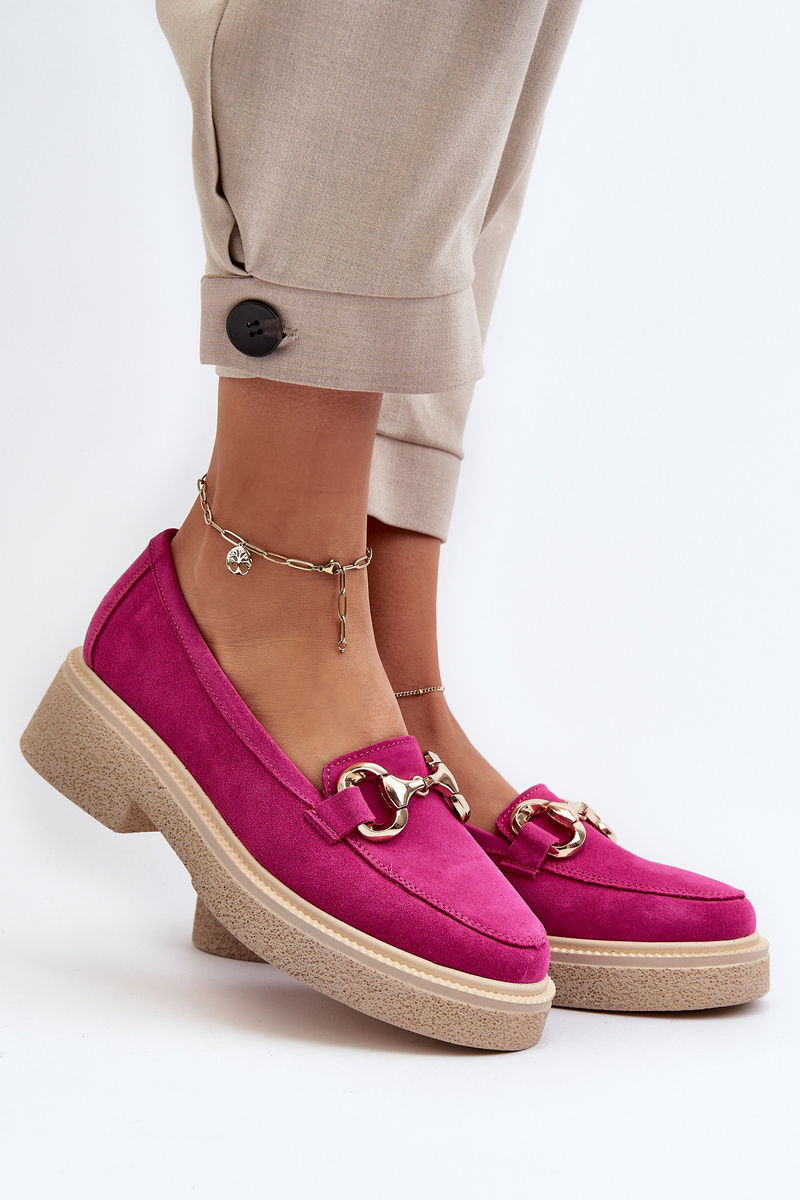 Zazoo 3429 Zamszowe Mokasyny Damskie Z Ozdobą Fuksja