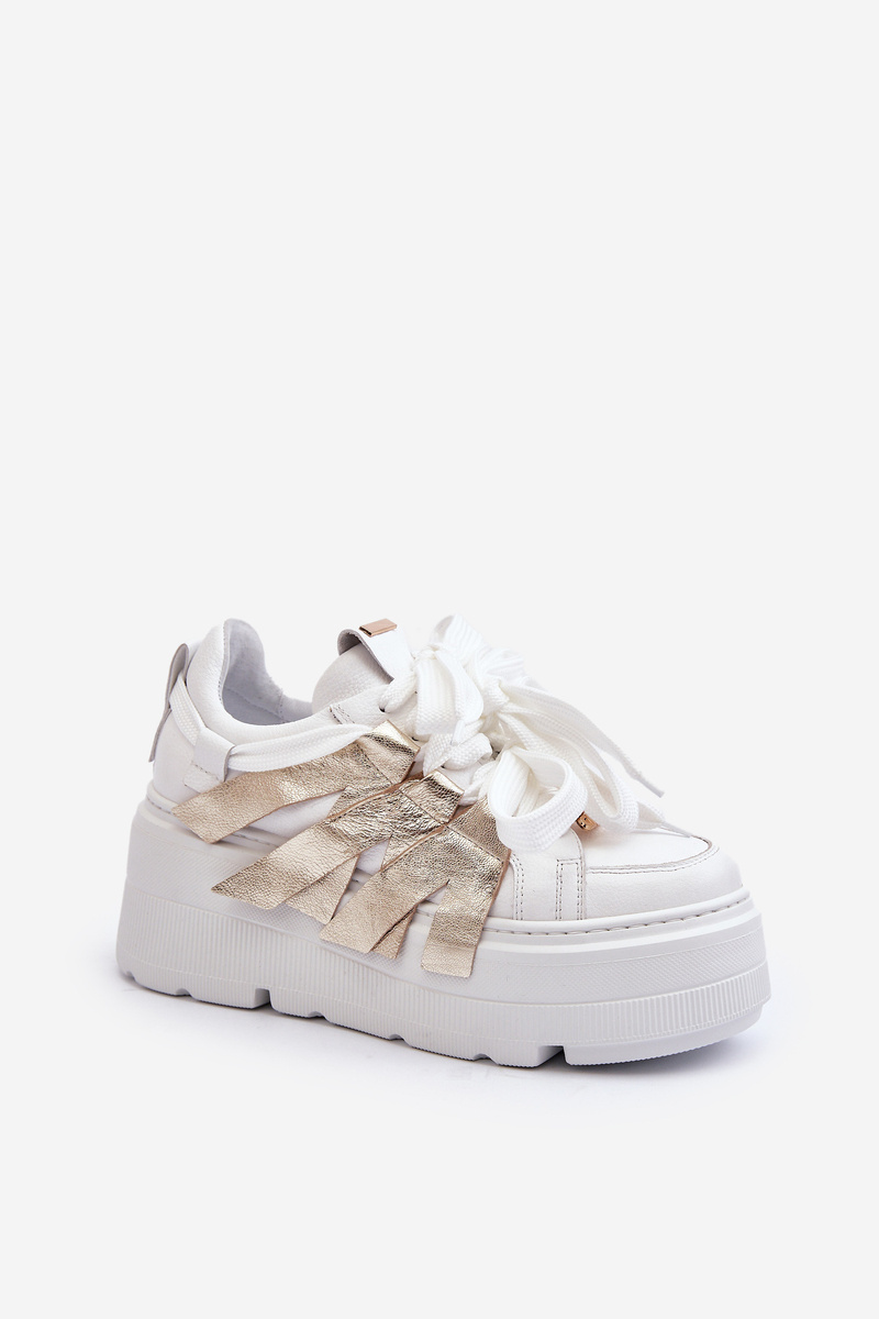 Zazoo 2F-7033 Sneakersy Na Masywnej Platformie Biało-Złote