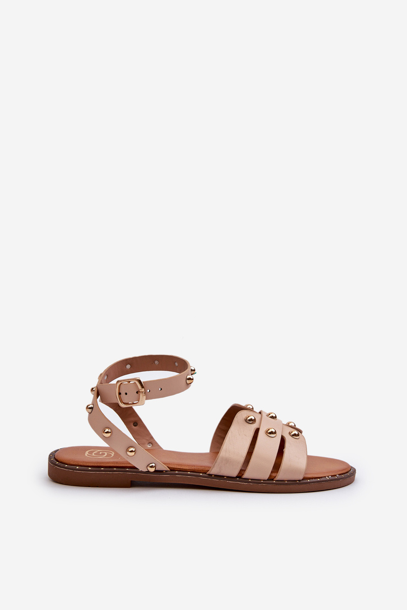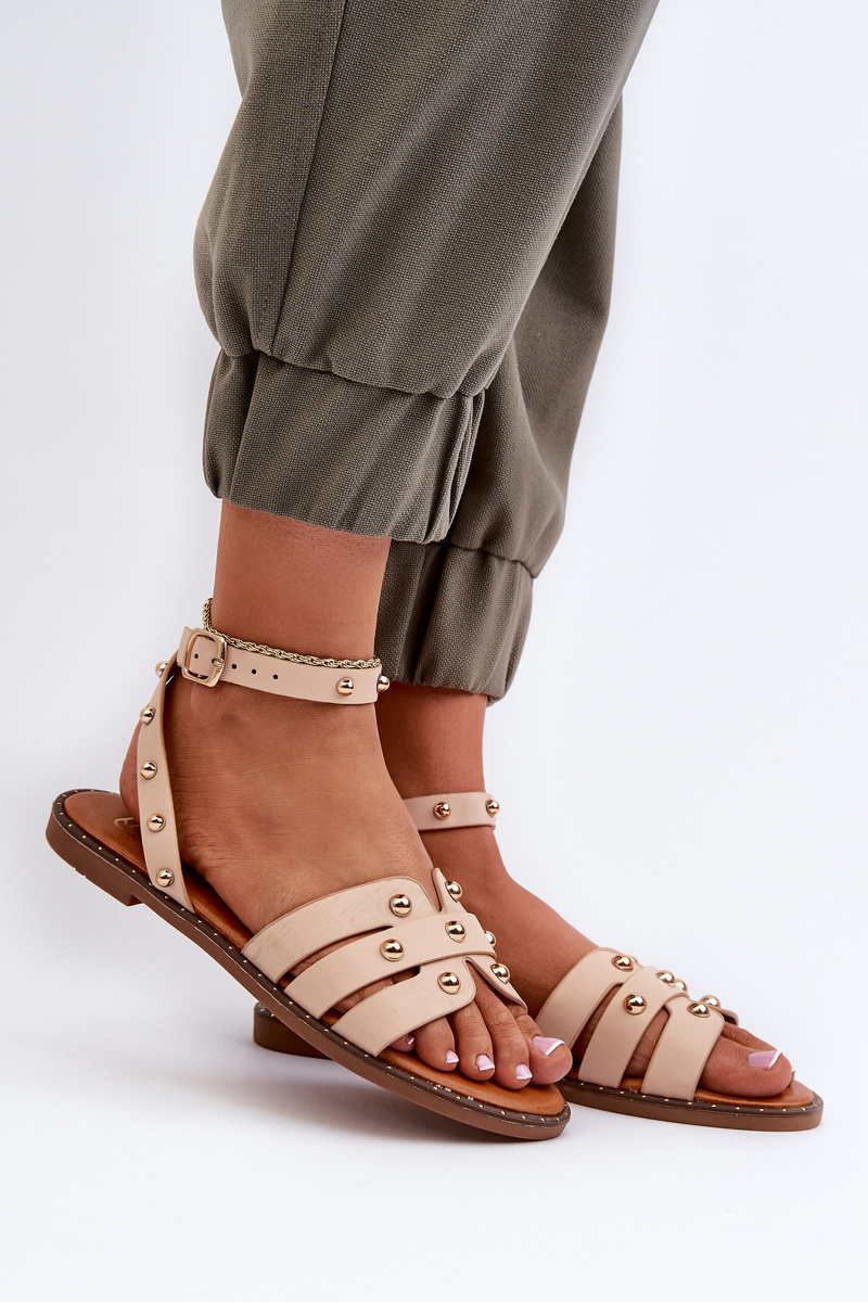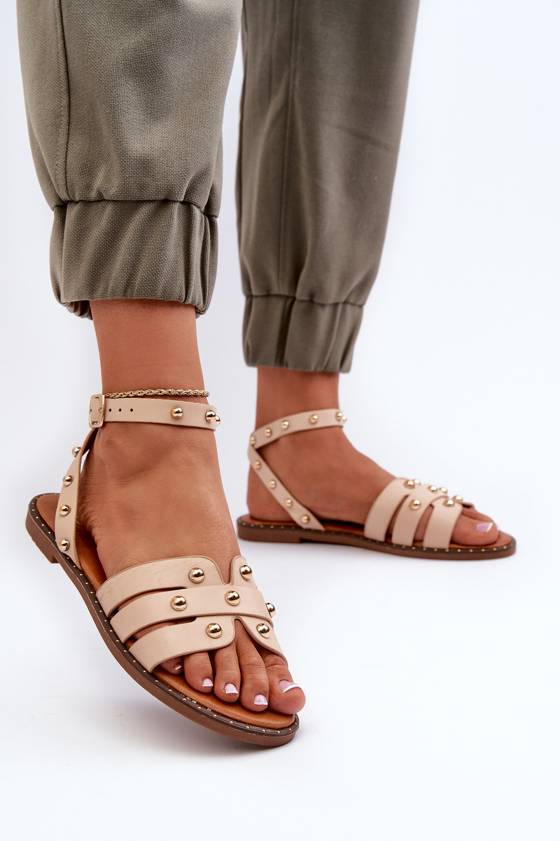 Zdobione Sandały Damskie Na Płaskim Obcasie Beżowe Ianaera