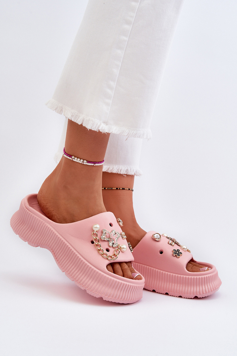 Damskie Piankowe Klapki Z Ozdobami Różowe Afariana