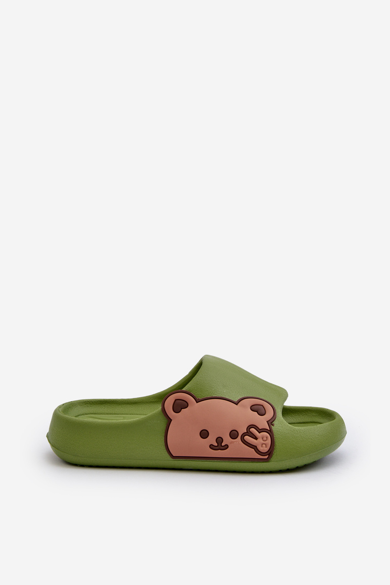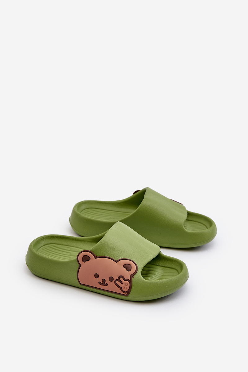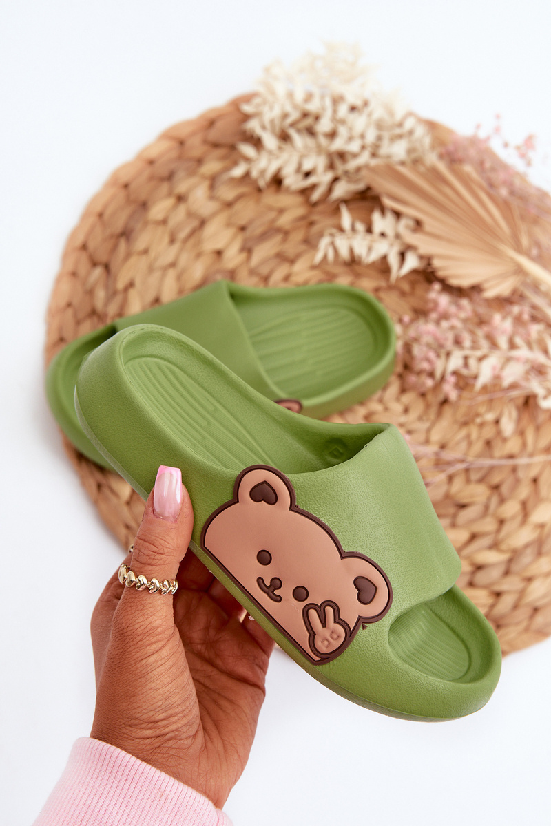 Lekkie Piankowe Klapki Z Misiem Zielone Relif