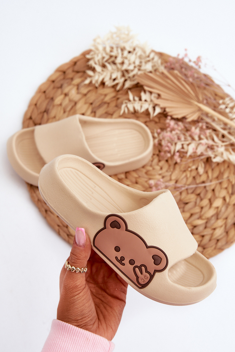 Lekkie Piankowe Klapki Z Misiem Beżowe Relif