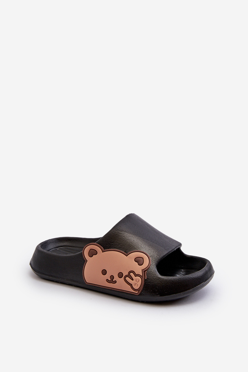 Lekkie Piankowe Klapki Z Misiem Czarne Relif