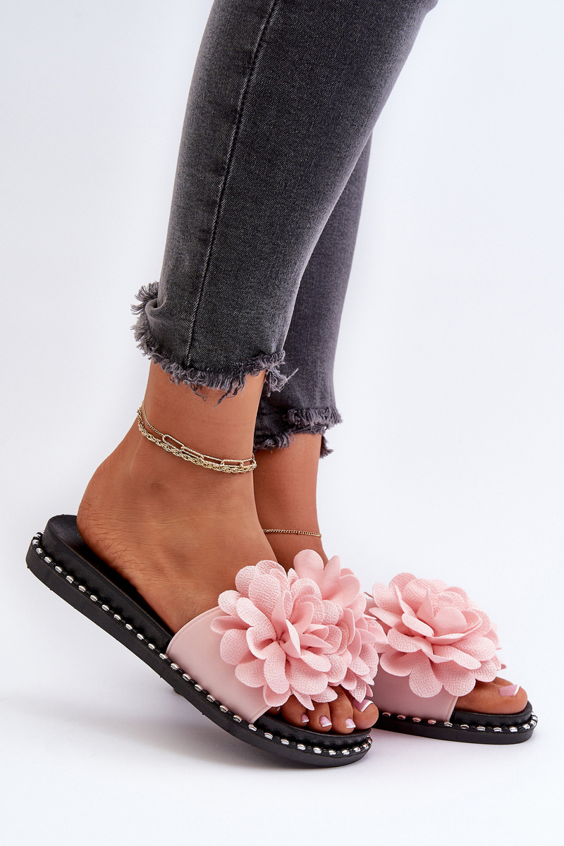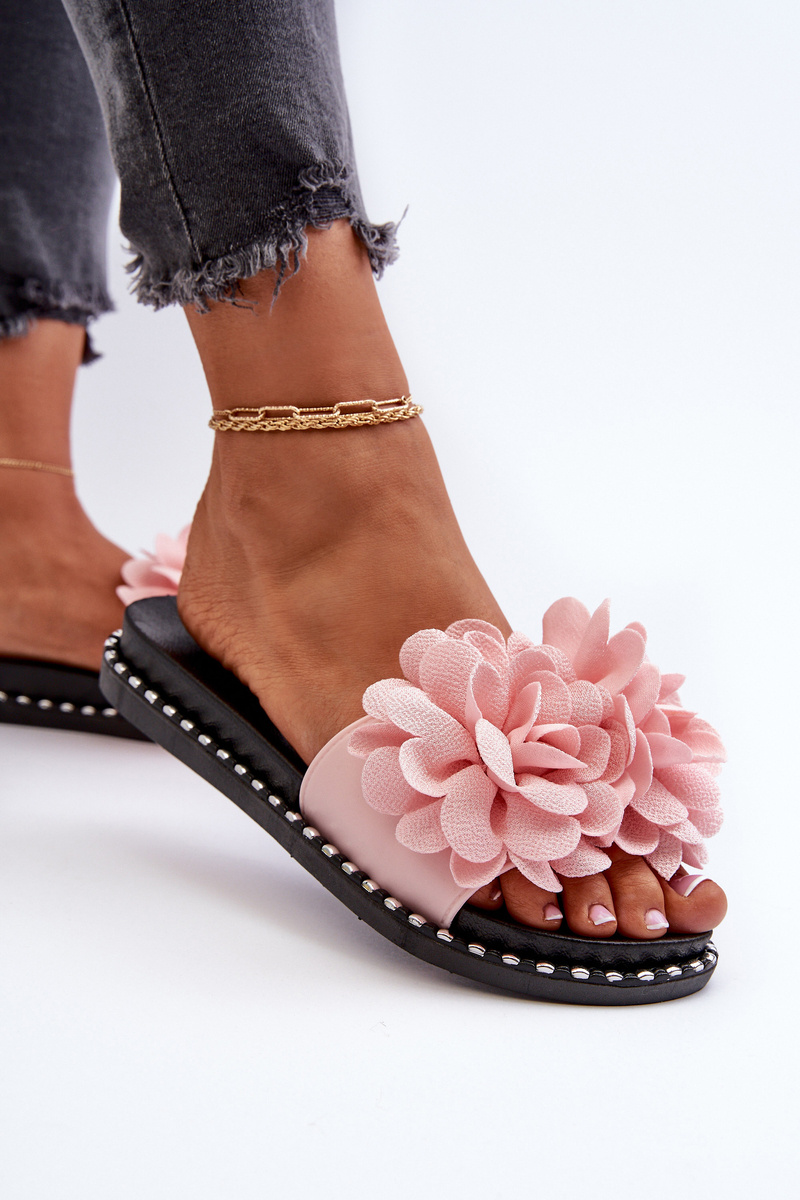Klapki Damskie Ozdobione Kwiatami Różowe Cellanen