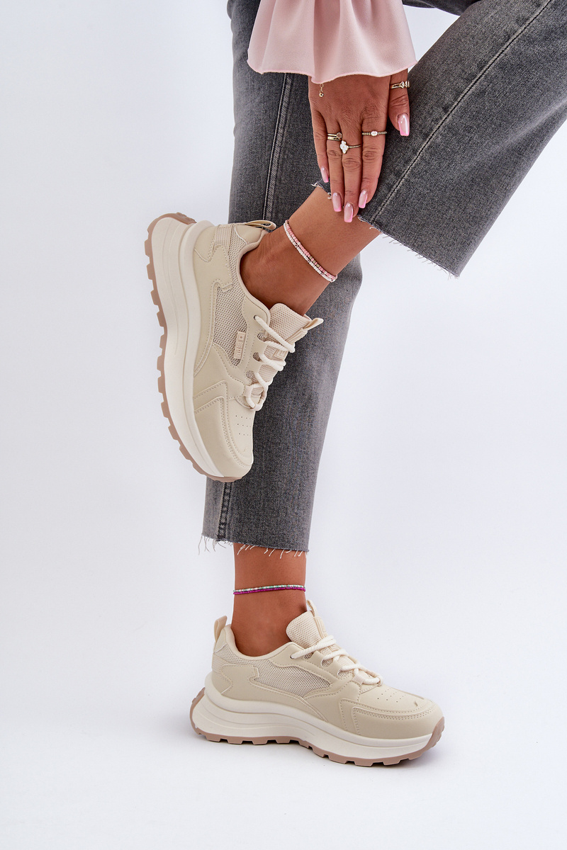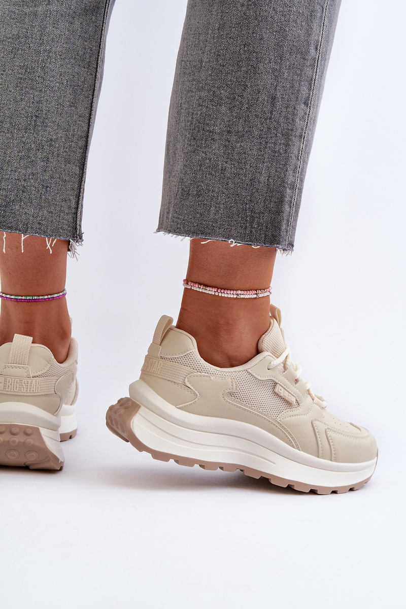 Sneakersy damskie od marki Big Star. Wykonane z eko skóry i materiału tekstylnego. Osadzone na grubej podeszwie. Model ten posiada wkładkę HI POLLY SYSTEM, która pochodzi z recyklingu, jest odporna na ścieranie i odkształcenia oaz absorbuje wilgoć. Dopasuj je do swoich ulubionych stylizacji i ciesz się modnym wyglądem oraz wygodą przez cały sezon! Przy wyborze rozmiaru prosimy sugerować się tabelą rozmiarów.