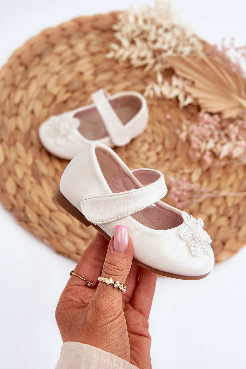 Balerinki Dziecięce Zapinane Na Rzep Z Ozdobą Białe Serinde
