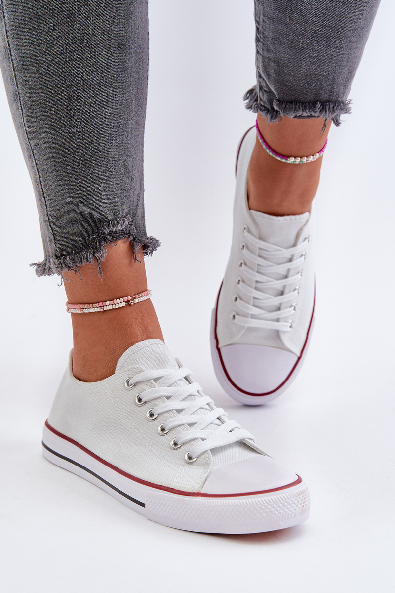 Trampki Damskie Klasyczne Niskie Białe Caelira