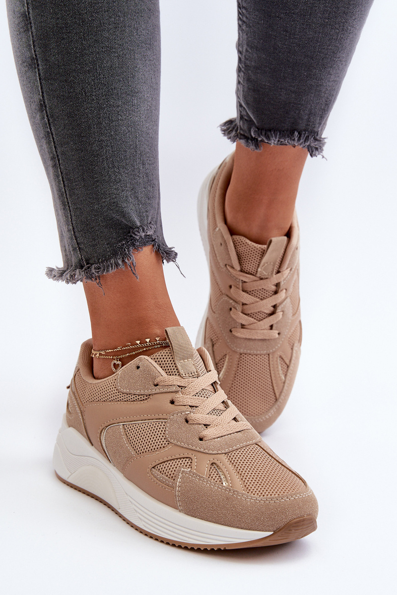 Sneakersy Damskie Na Platformie Brązowe Lenivia