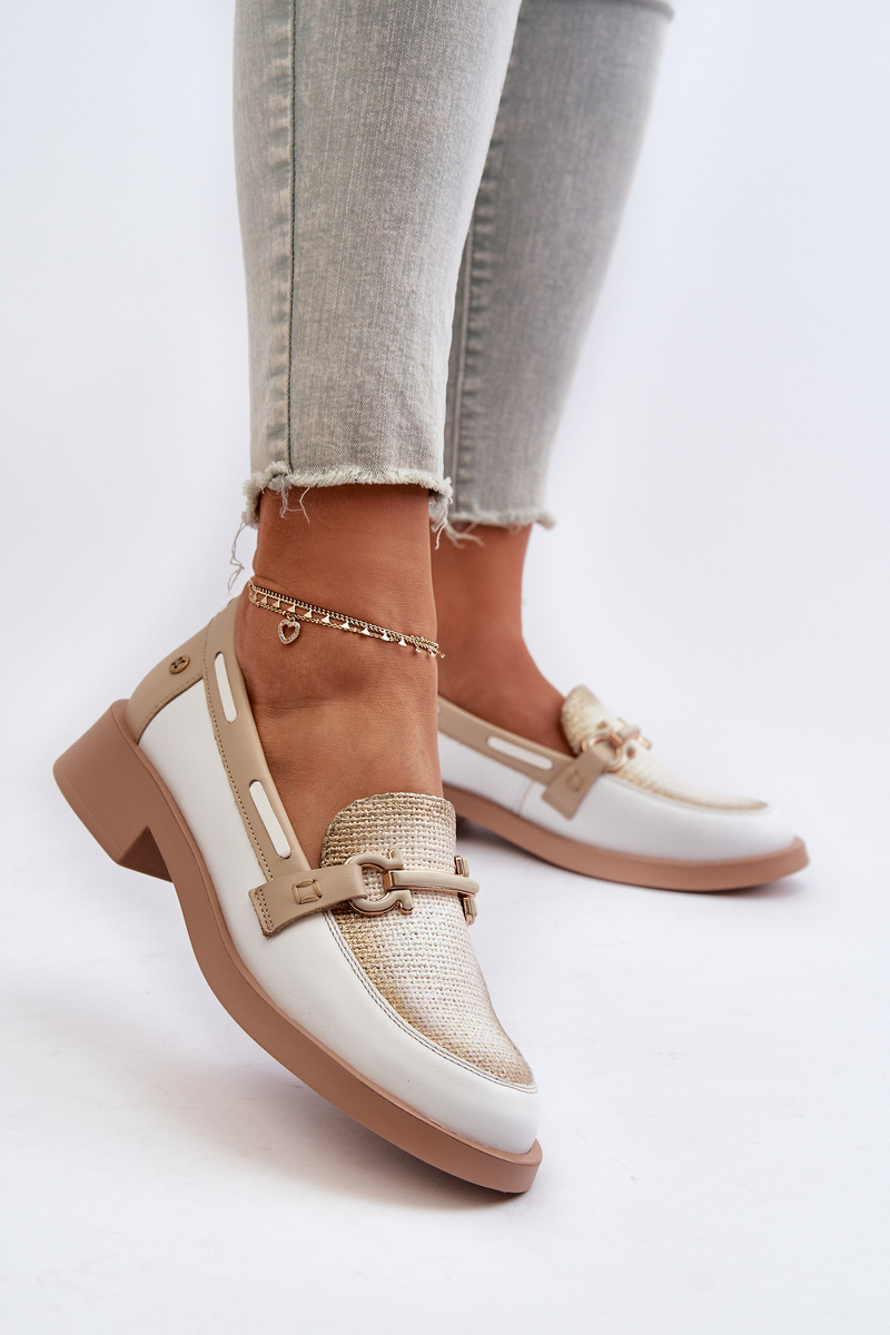 Skórzane Mokasyny Półbuty Damskie Maciejka 06493-11 Biało-Beżowe