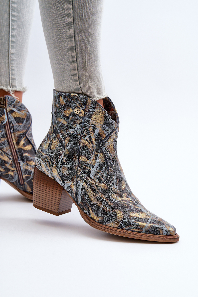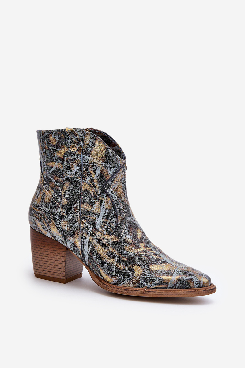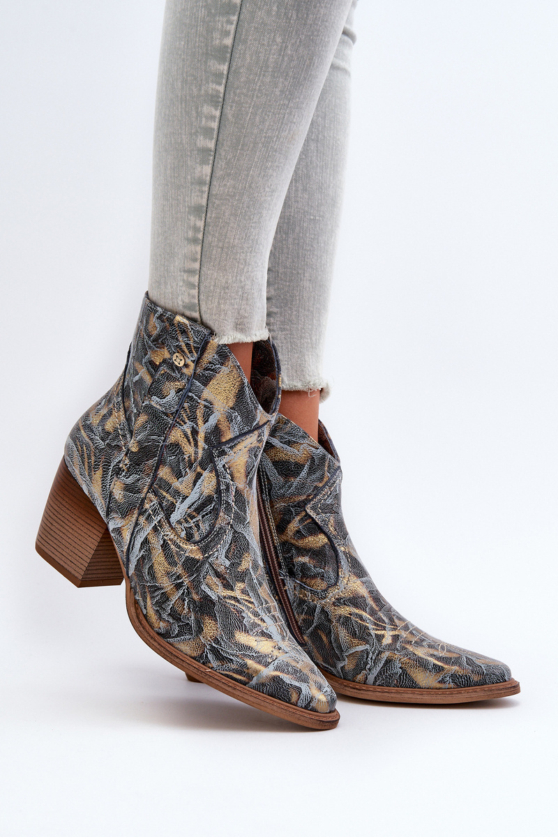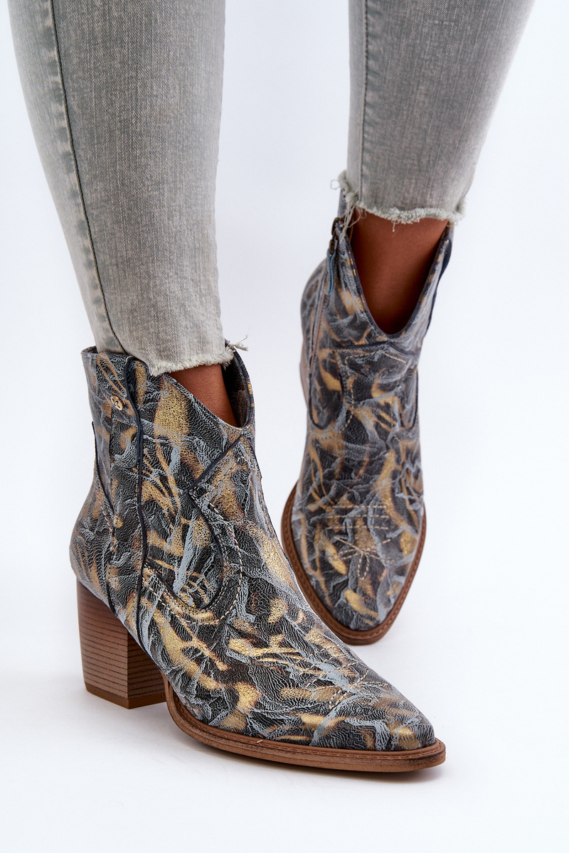Botki Kowbojki Skórzane Damskie Na Obcasie Maciejka 05776-13 Niebieskie