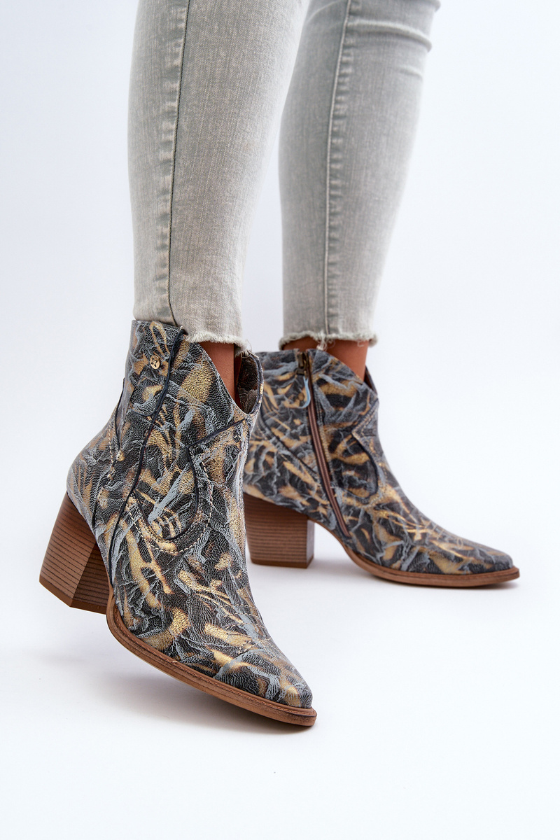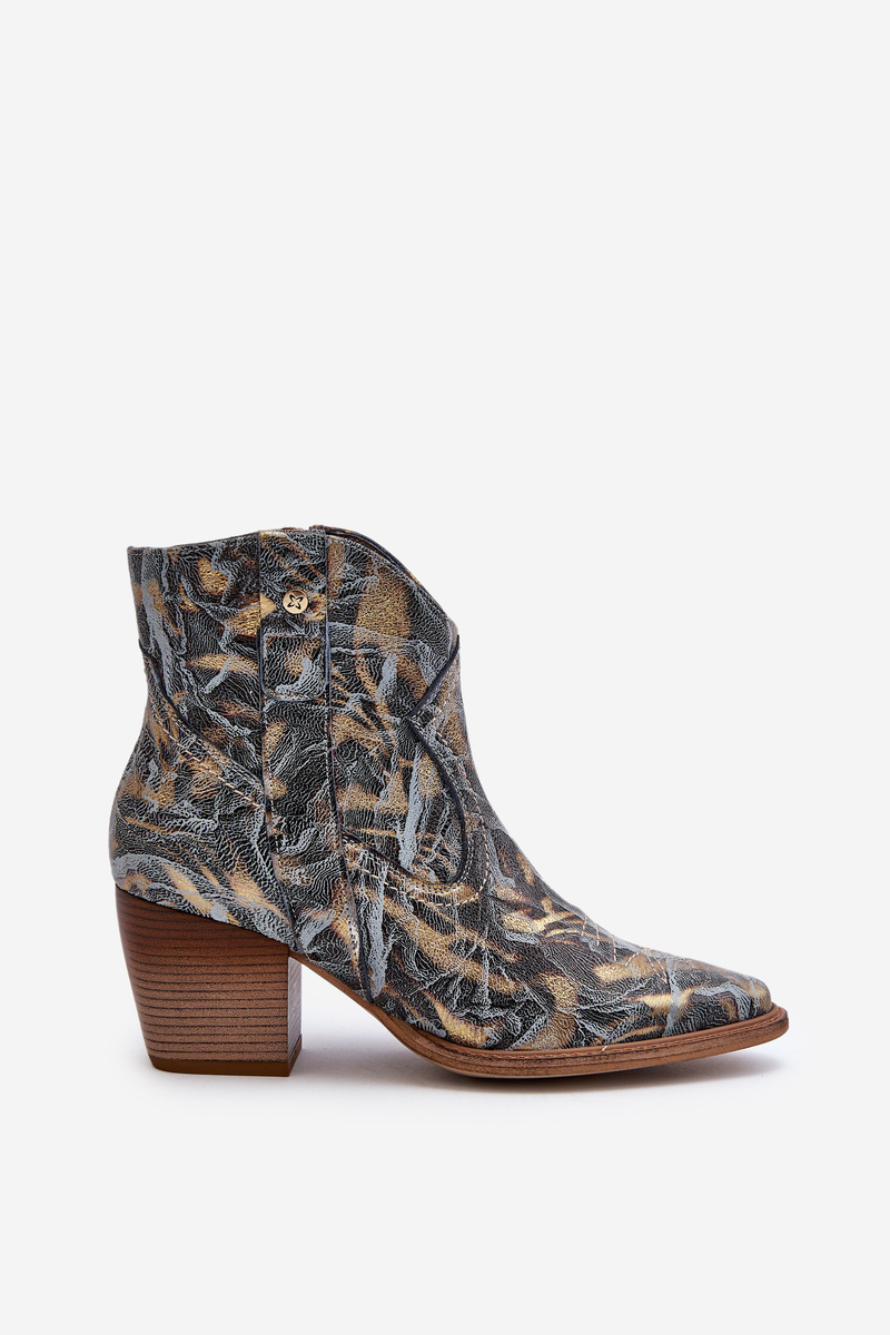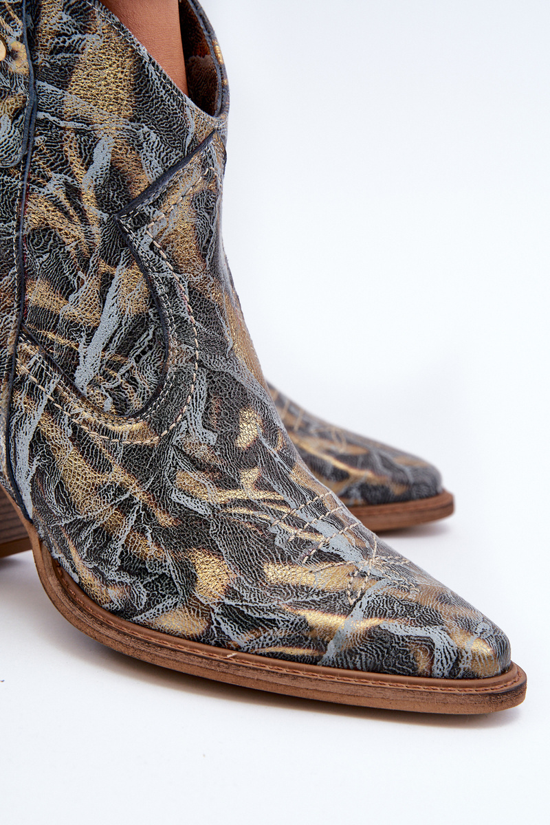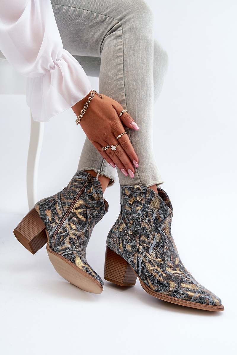 Botki Kowbojki Skórzane Damskie Na Obcasie Maciejka 05776-13 Niebieskie