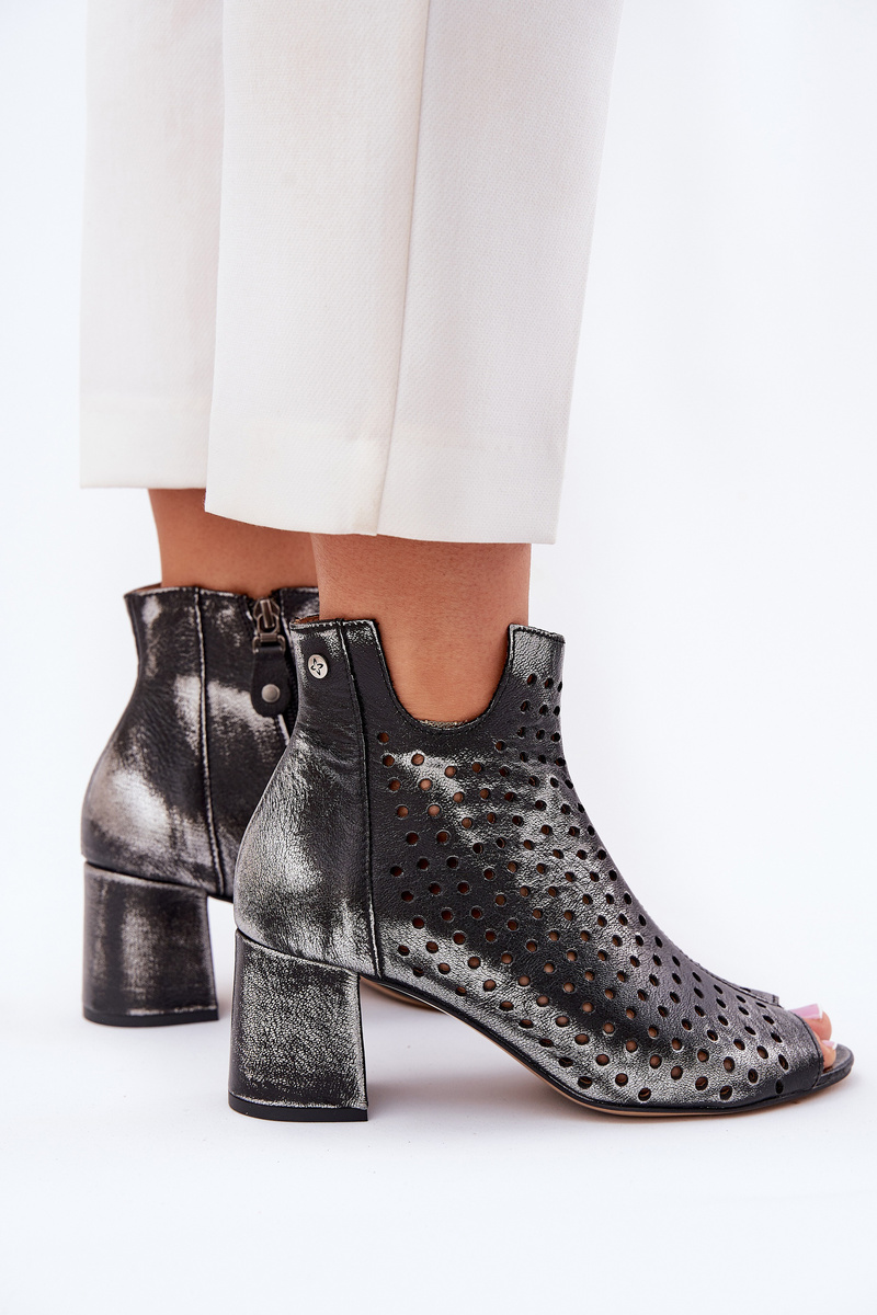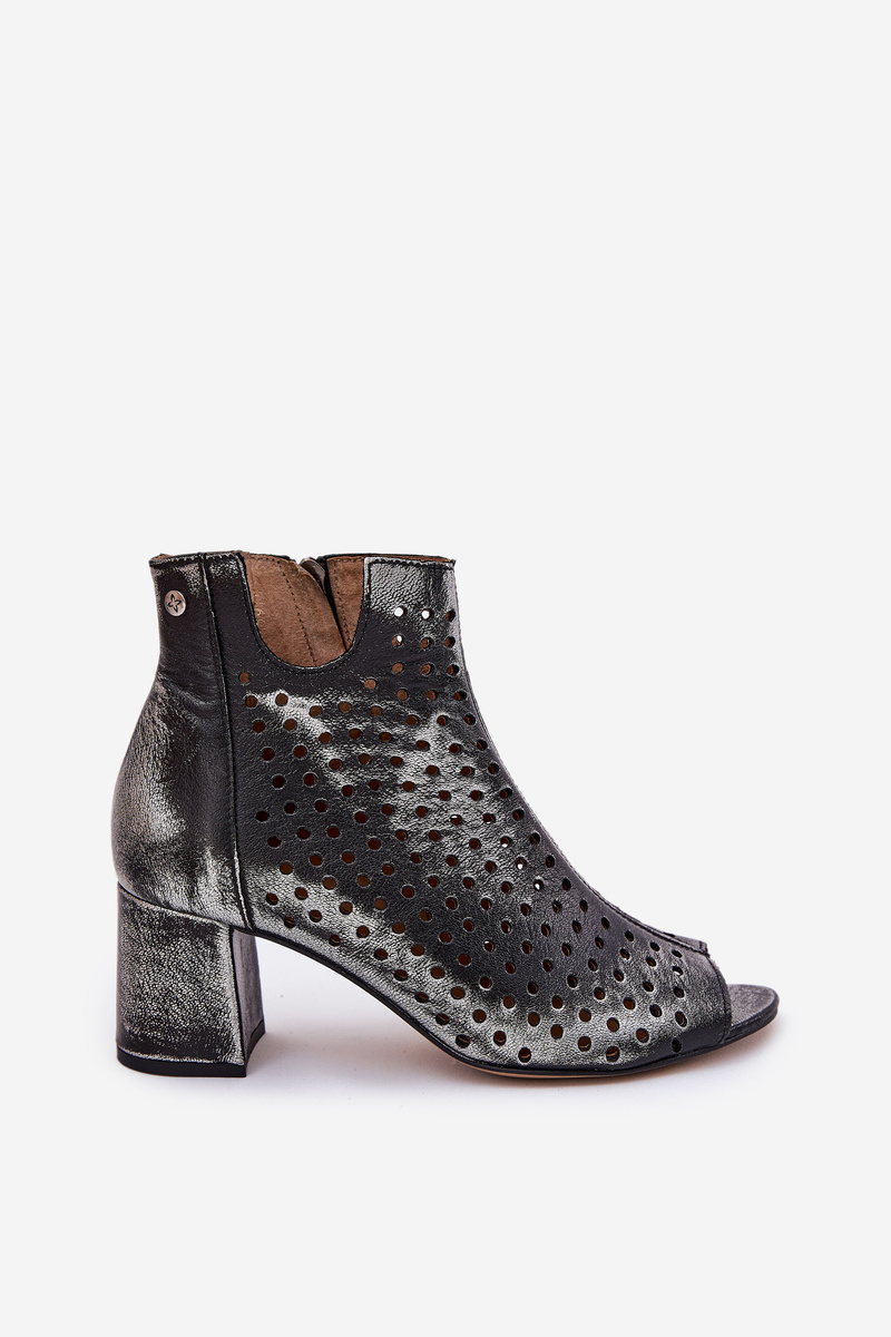 Skórzane Ażurowe Botki Maciejka 05420-01 Czarne