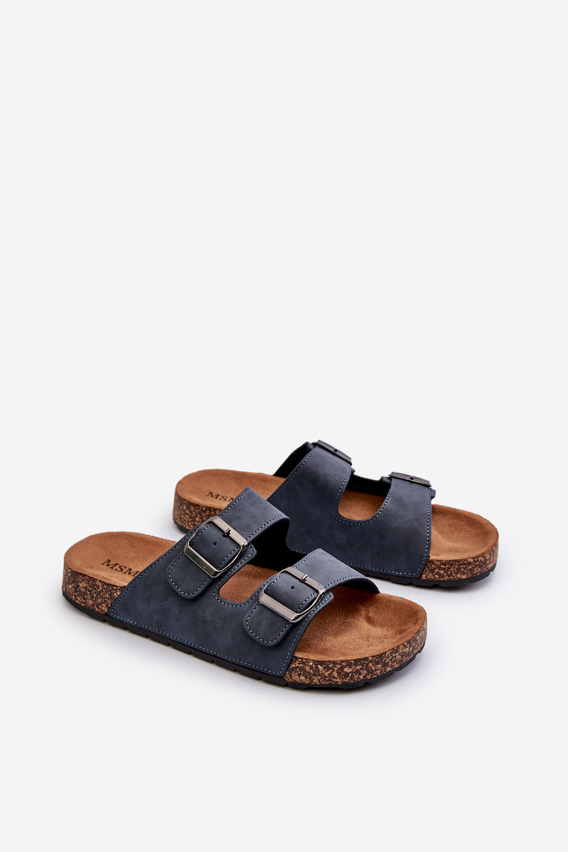 Męskie Klapki Na Korkowej Podeszwie Granatowe Rosawia