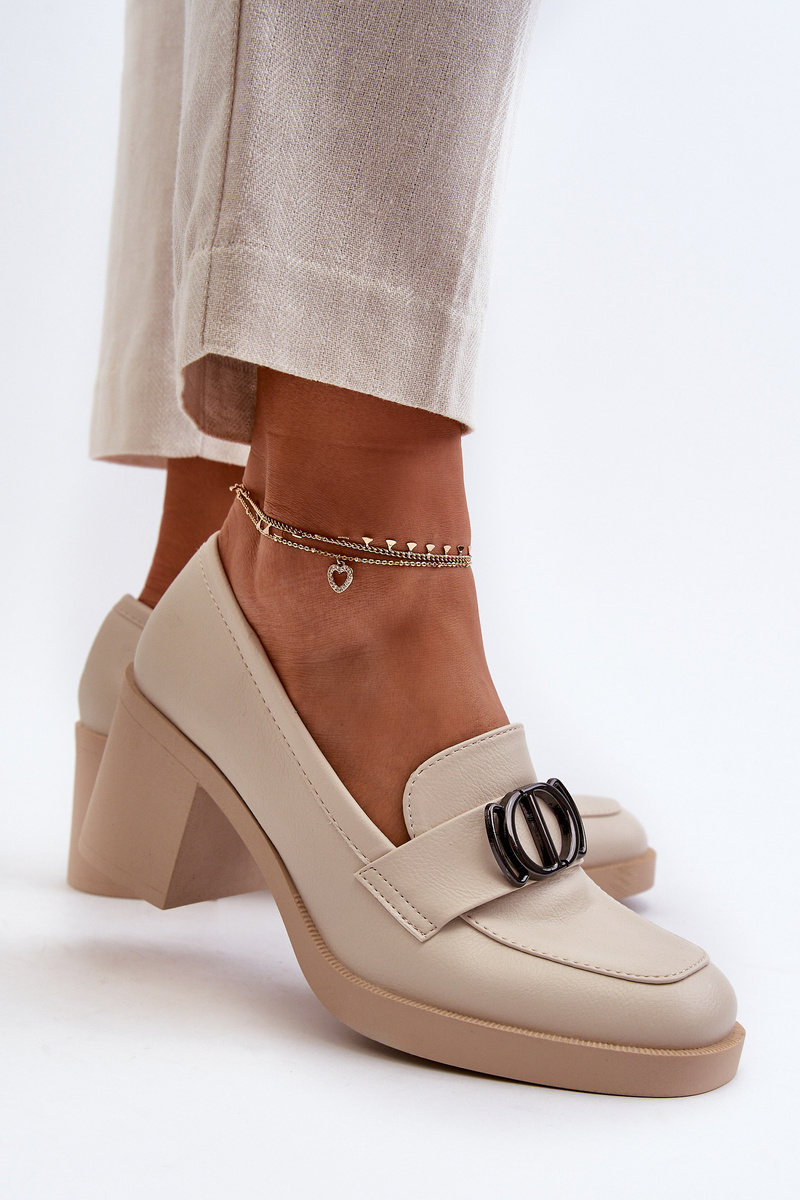 Półbuty Damskie Na Obcasie Z Ozdobą Beżowe Nedarea