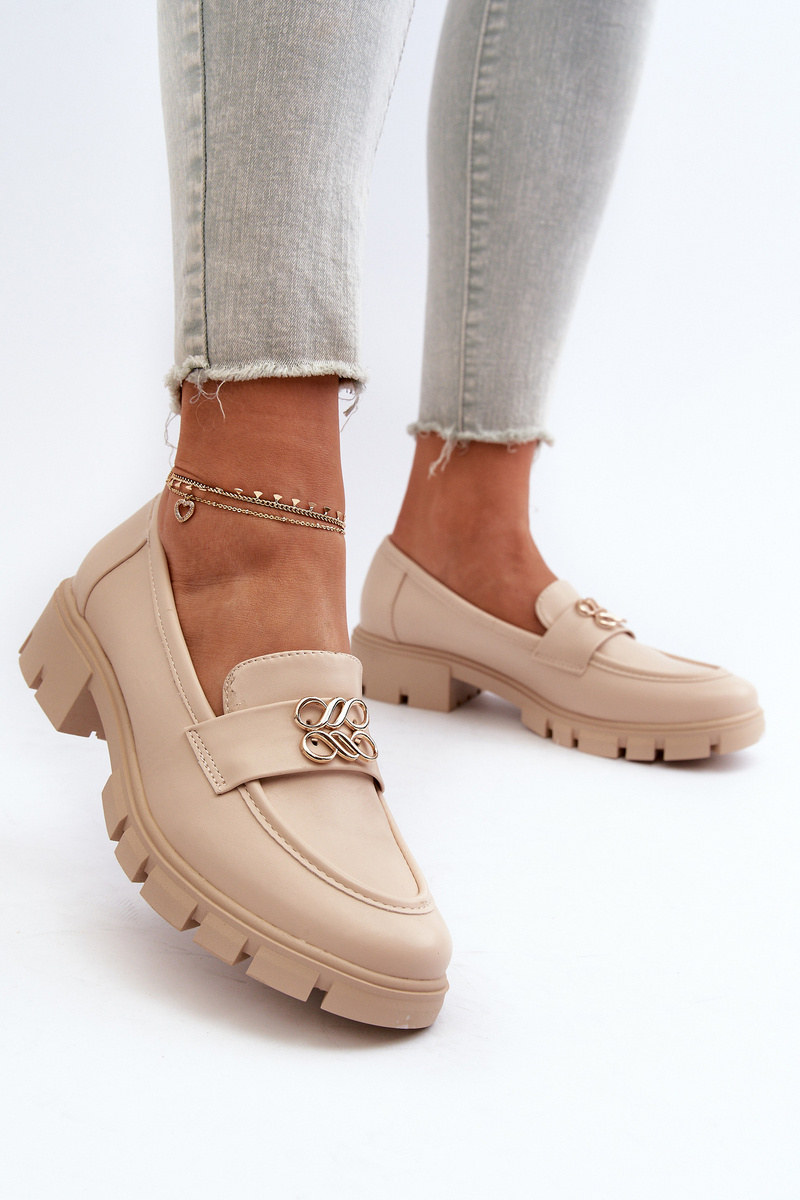 Eleganckie Mokasyny Damskie Ze Złotą Ozdobą Beżowe Tosisa