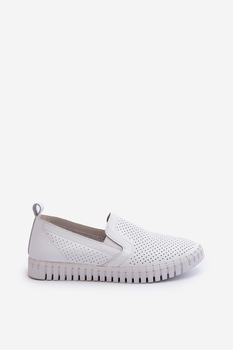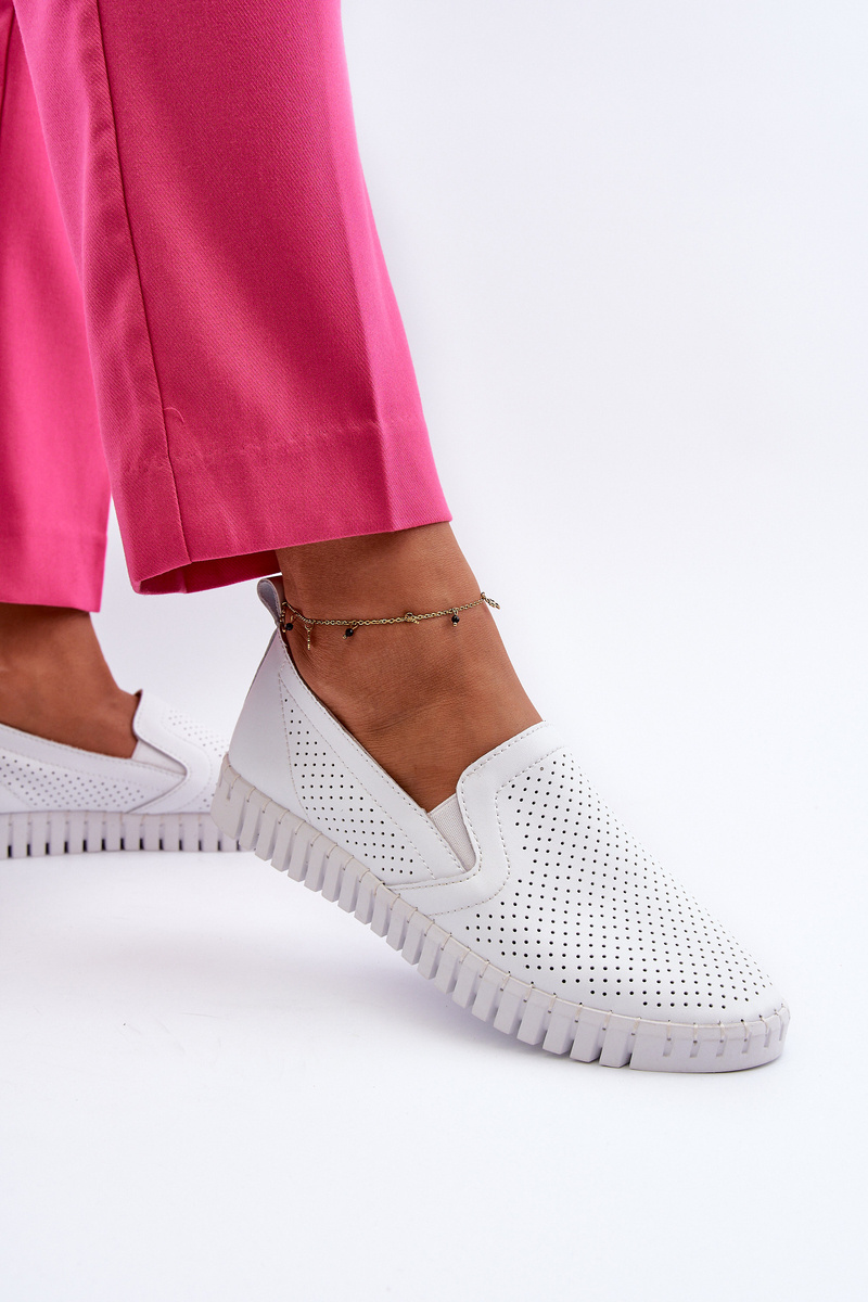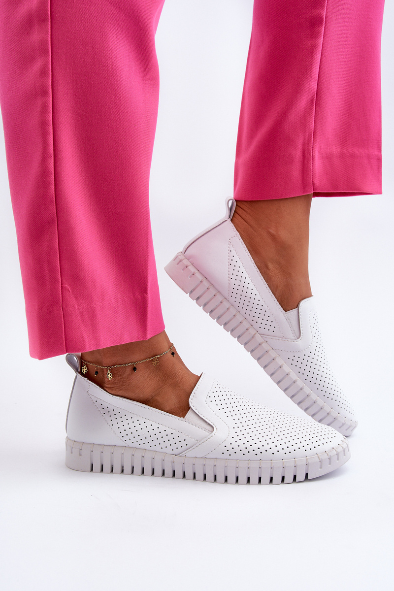 Damskie Ażurowe Półbuty Skórzane Wsuwane Białe Theophia