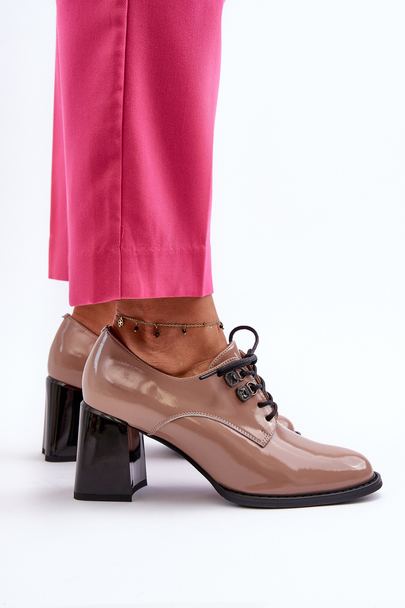 Półbuty Damskie Lakierowane Na Słupku Beżowe Nelione