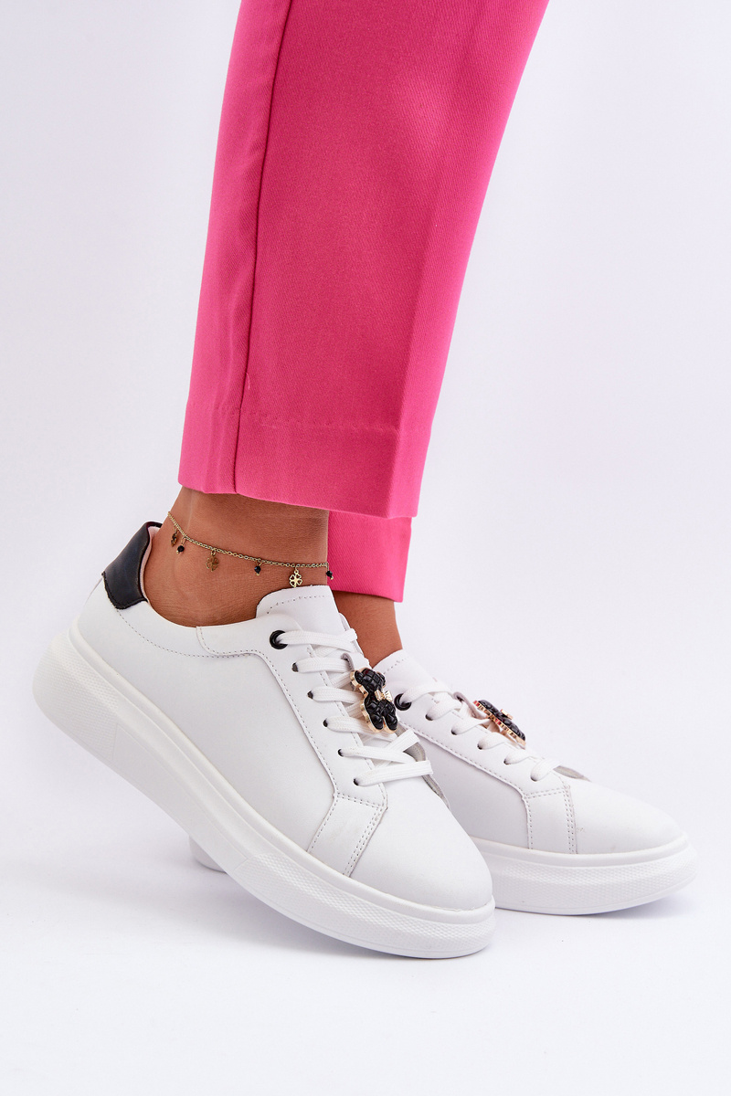 Skórzane Sneakersy Damskie Z Misiem Białe Mirven