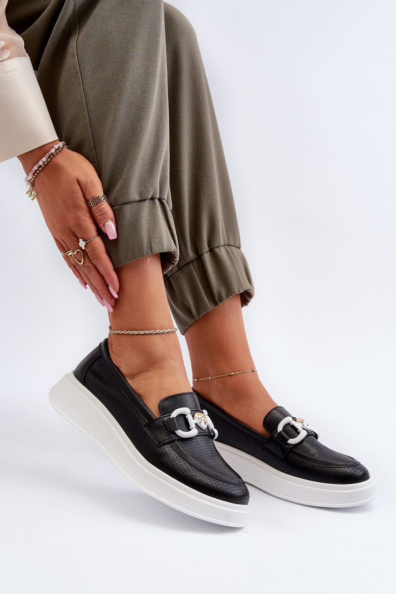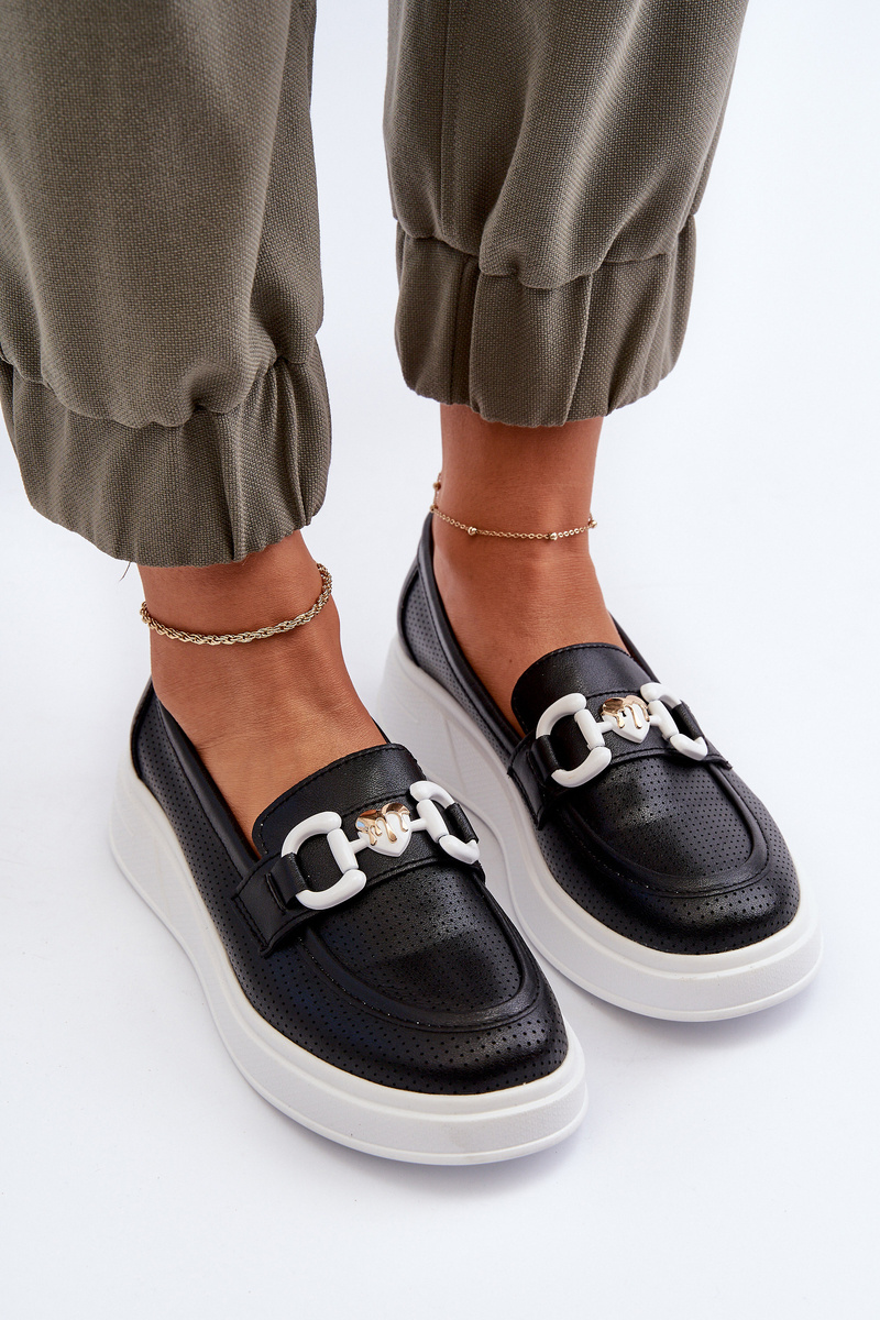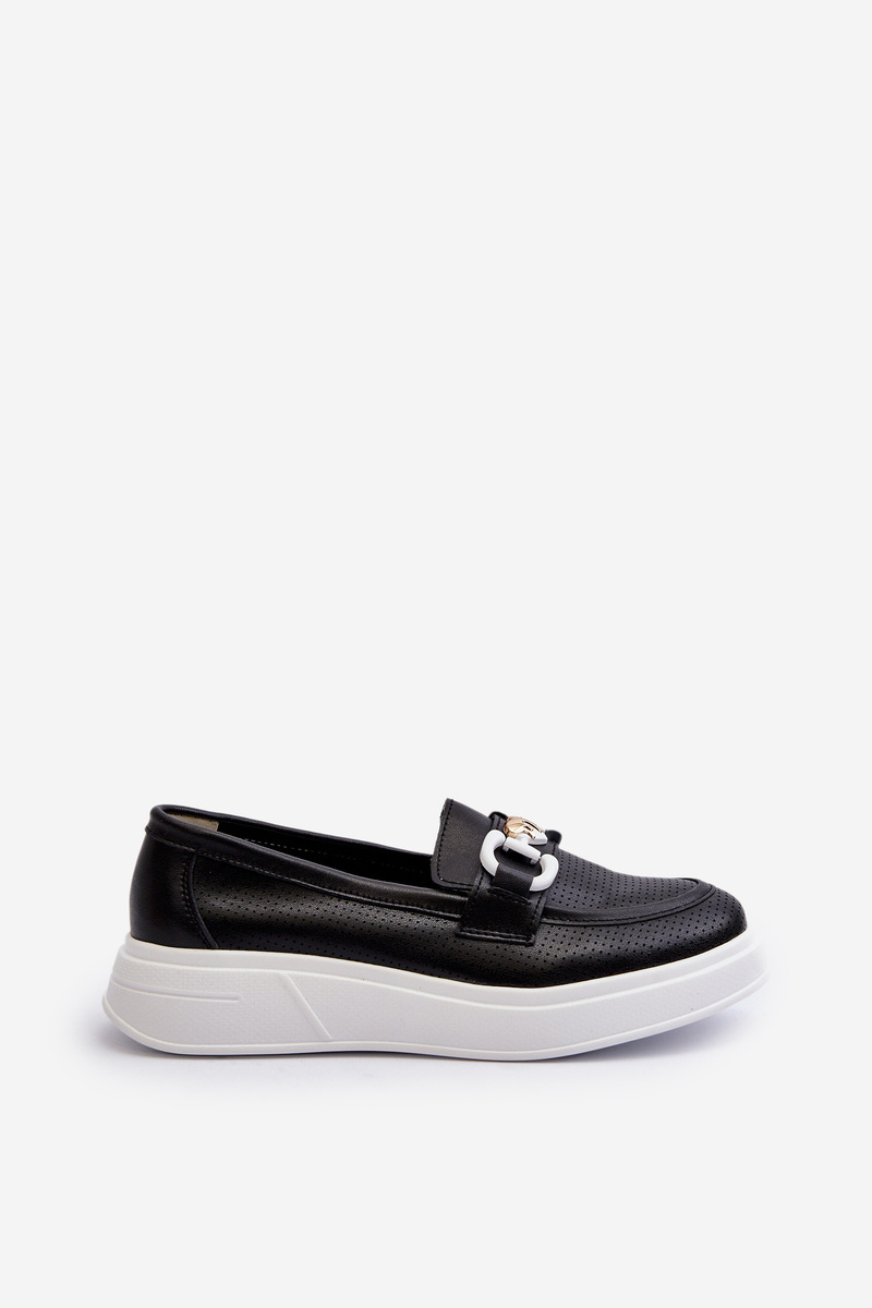Skórzane Mokasyny Damskie Na Platformie Czarne S.Barski LR720
