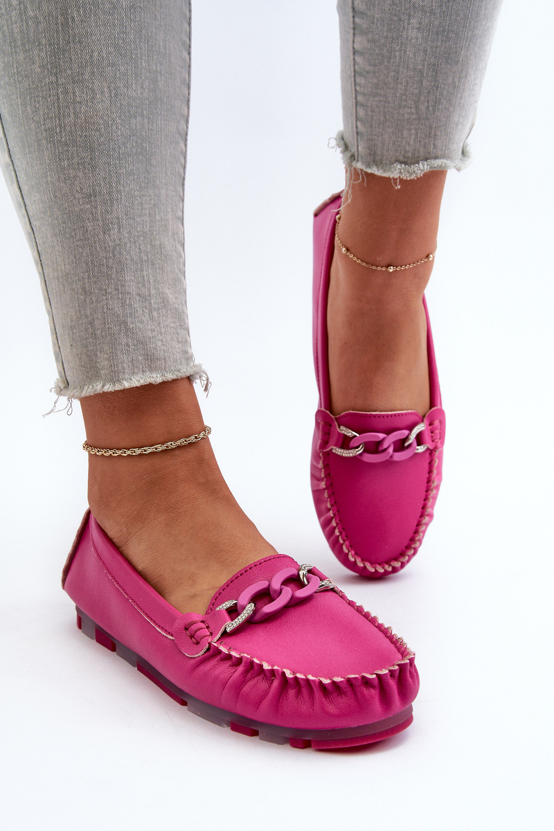 Skórzane Mokasyny Damskie Z Ozdobą Fuksja S.Barski LR339