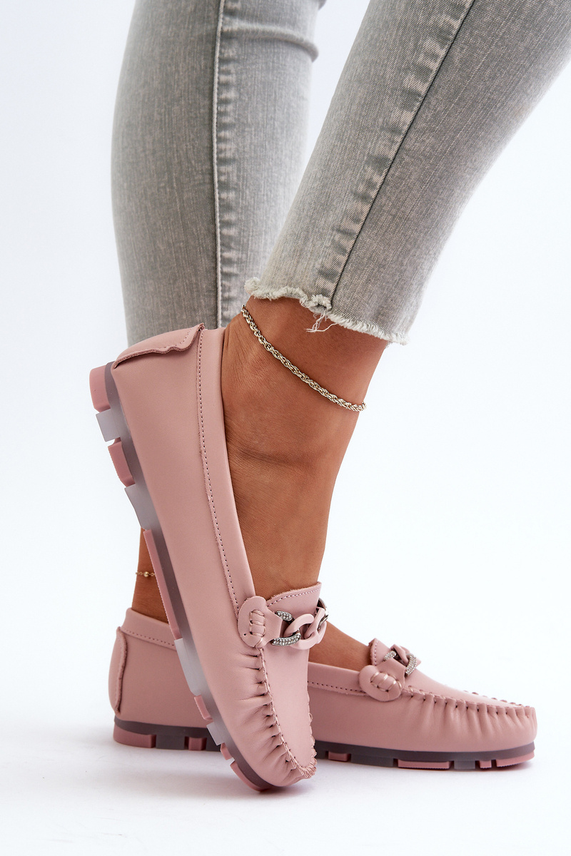 Skórzane Mokasyny Damskie Z Ozdobą Różowe S.Barski LR339