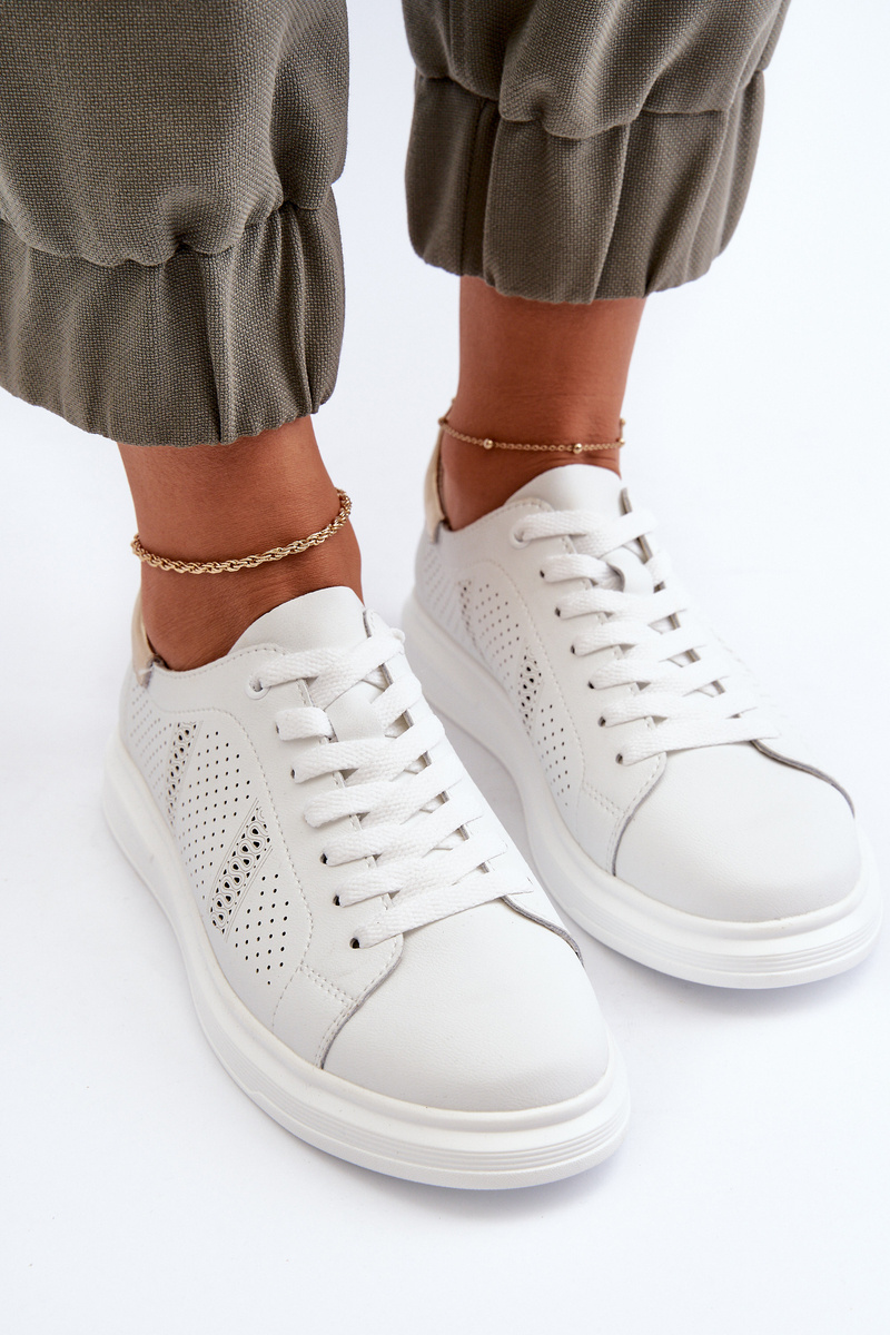 Lekkie Skórzane Trampki Damskie Białe S.Barski LR760