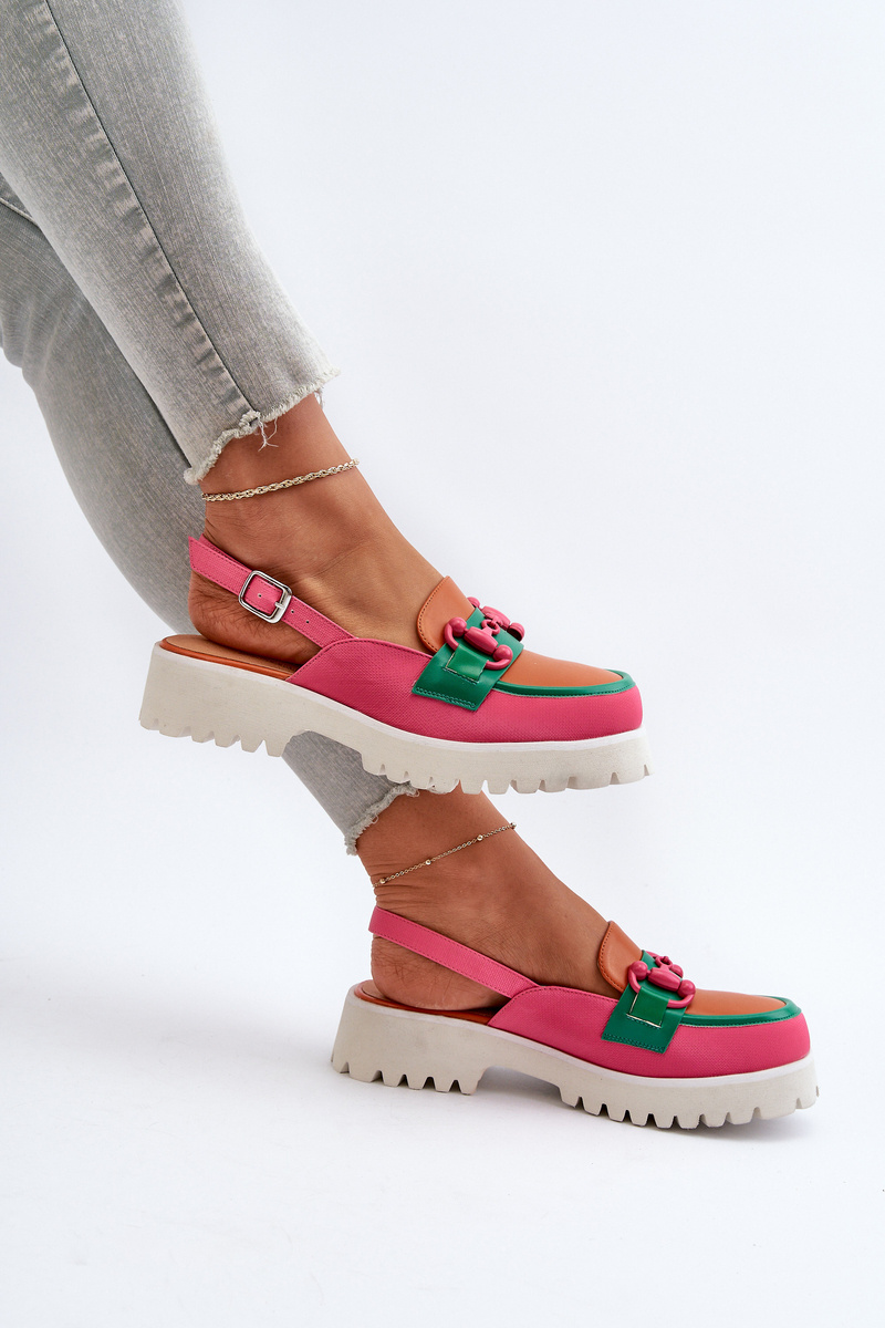 Modne sandały wykonane z wysokiej jakości eko skóry są doskonałym połączeniem stylu i wygody. Osadzone na płaskim obcasie zapewniają stabilność i komfort podczas noszenia. Z tyłu posiadają regulowany pasek ze sprzączką, który umożliwia idealne dopasowanie do stopy. To niezwykle ciekawy model, który doskonale uzupełni różnorodne letnie stylizacje! Przy wyborze rozmiaru prosimy kierować się tabelą rozmiarów.