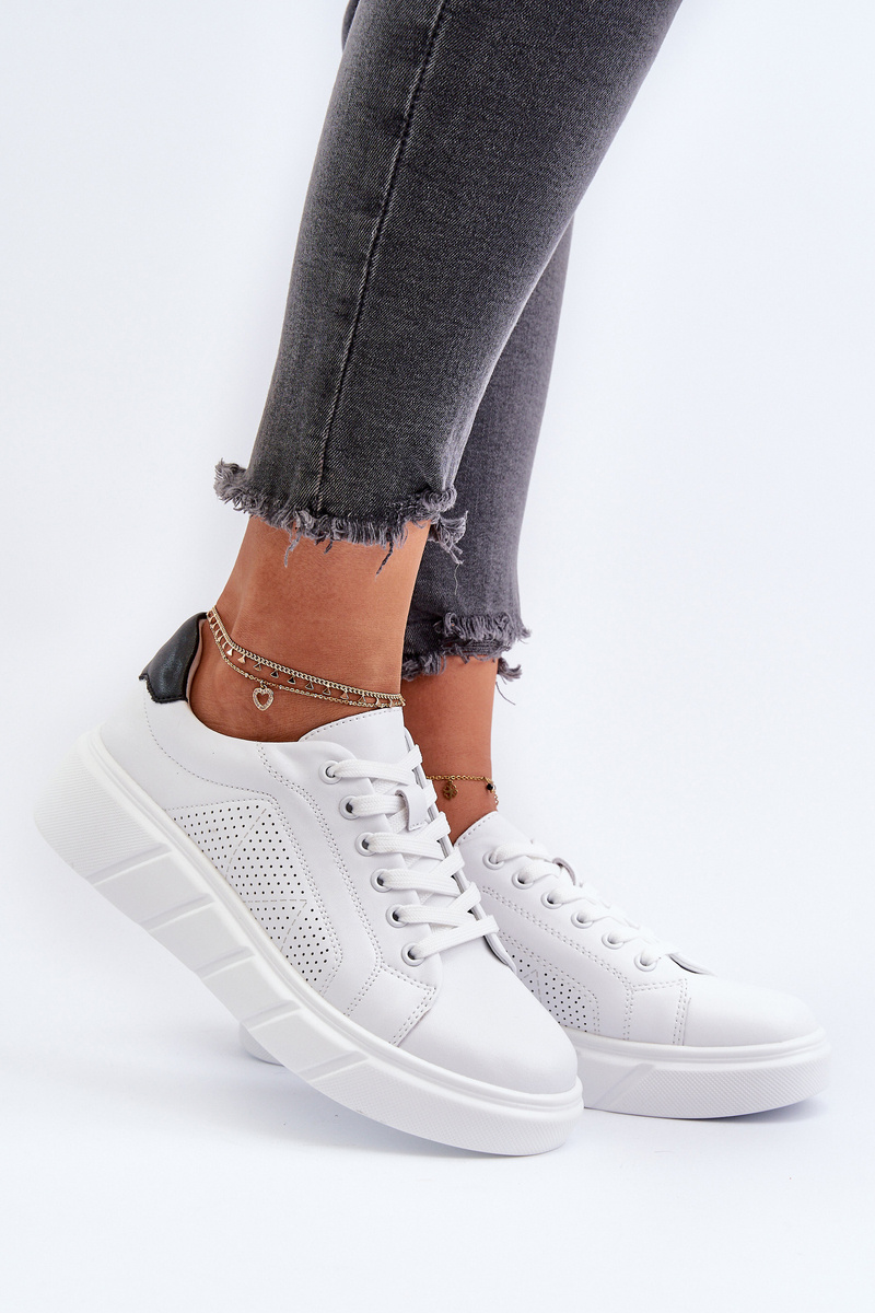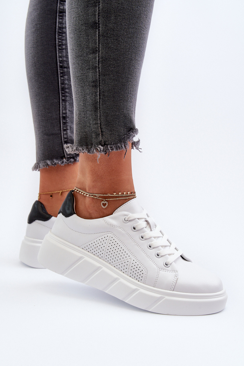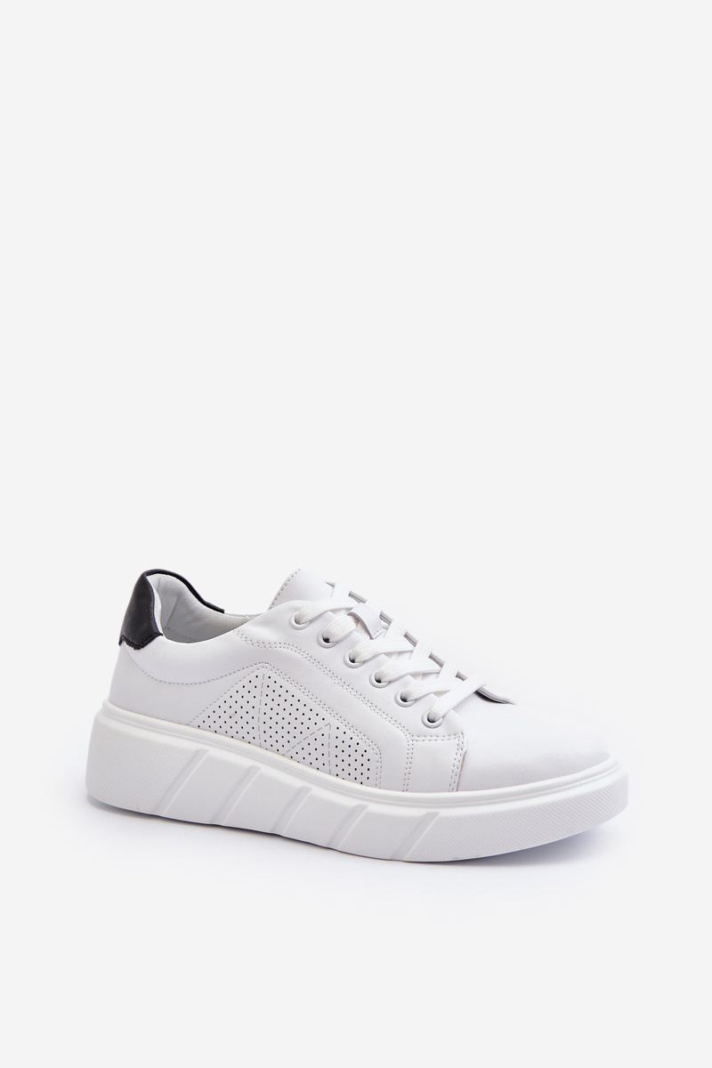 Damskie Skórzane Sneakersy Na Platformie Białe Gatira