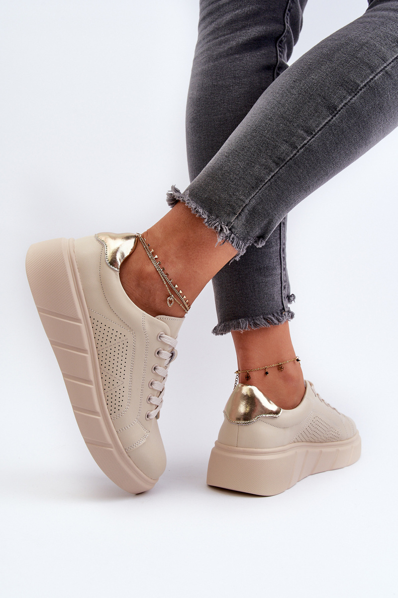 Damskie Skórzane Sneakersy Na Platformie Beżowe Gatira