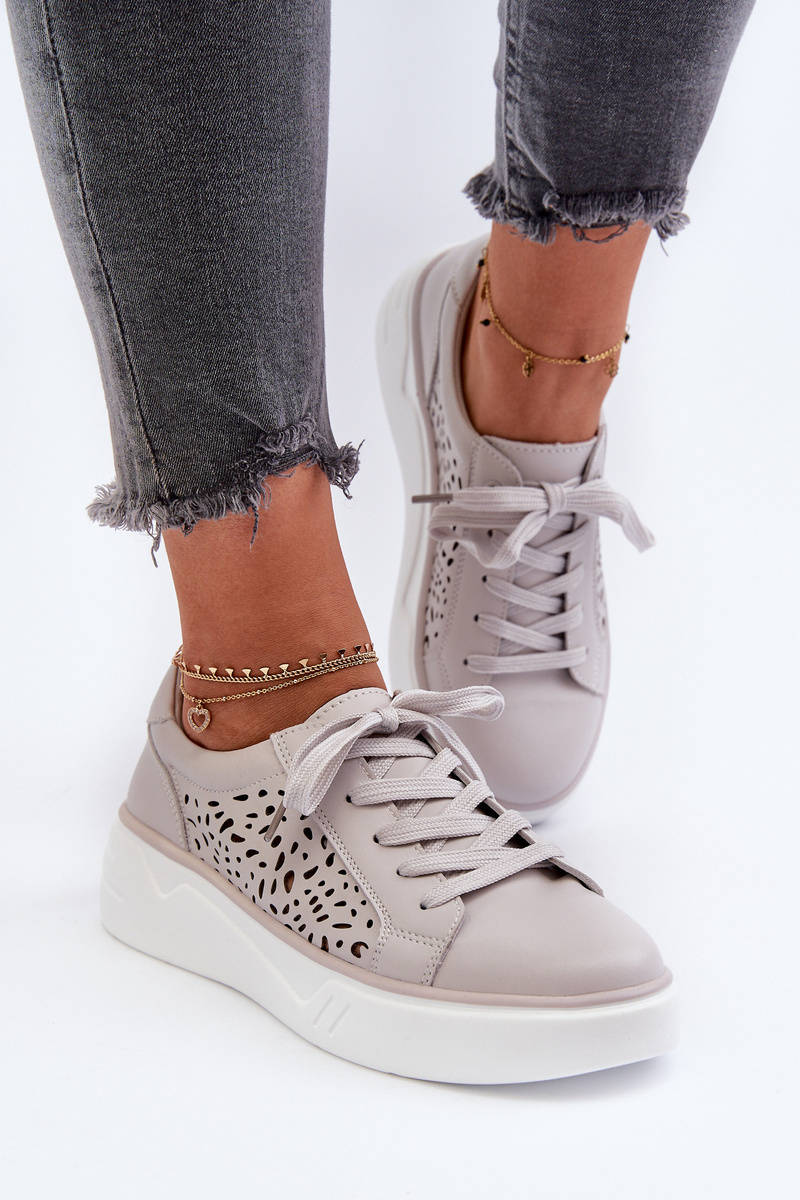 Ażurowe Sneakersy Damskie Na Platformie Skórzane Szare Peilaeno