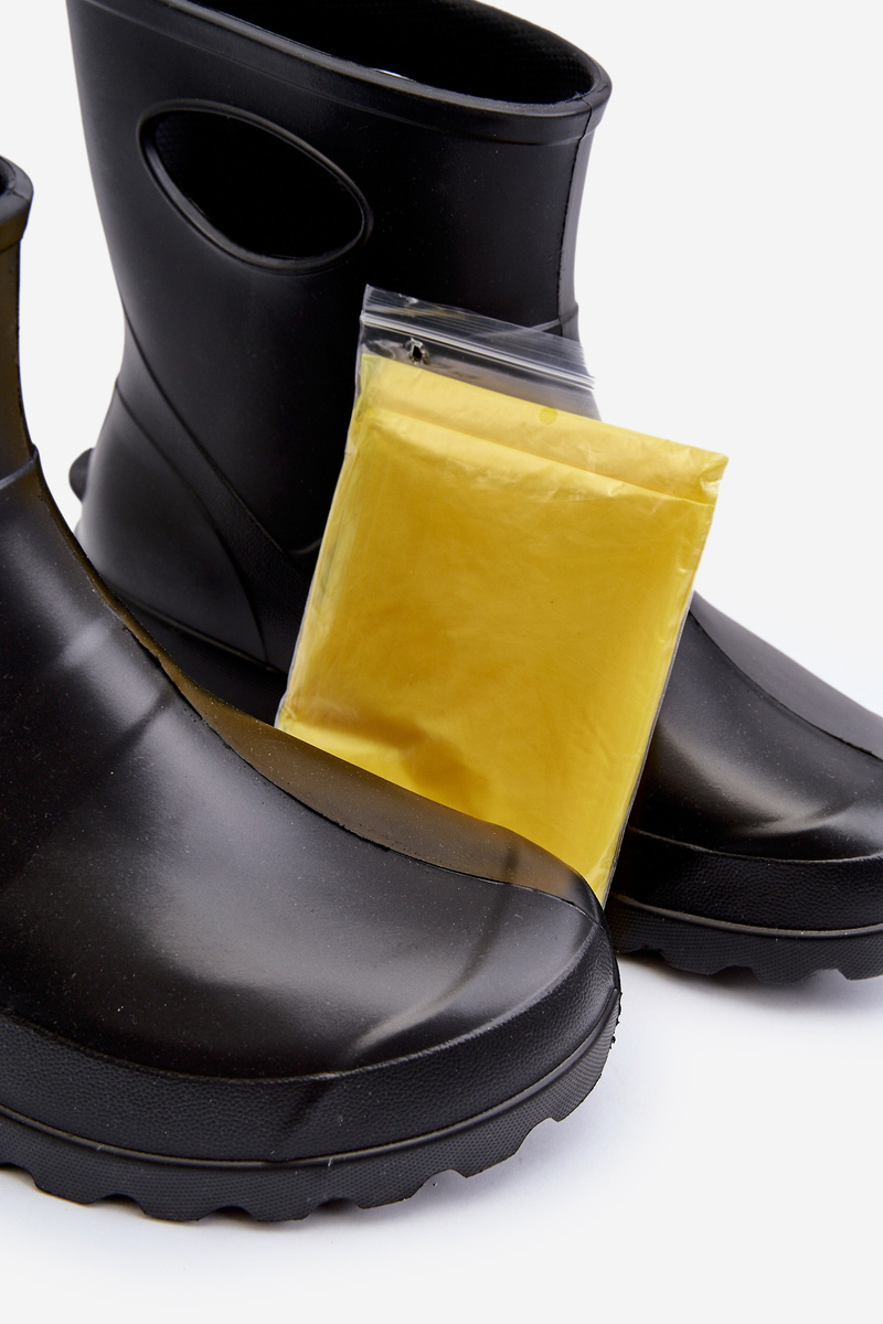 Lekkie, wodoszczelne kalosze męskie wykonane z materiału EVA, zapewniają nie tylko bezpieczeństwo, ale także trwałość i wytrzymałość. Wymienna wkładka jest komfortowa w użytkowaniu. Wycięcia w cholewce ułatwiają zakładanie, co sprawia, że są niezwykle praktyczne. Dodatkowo do butów dołączona jest peleryna przeciwdeszczowa. Przy wyborze rozmiaru prosimy sugerować się tabelą rozmiarów.