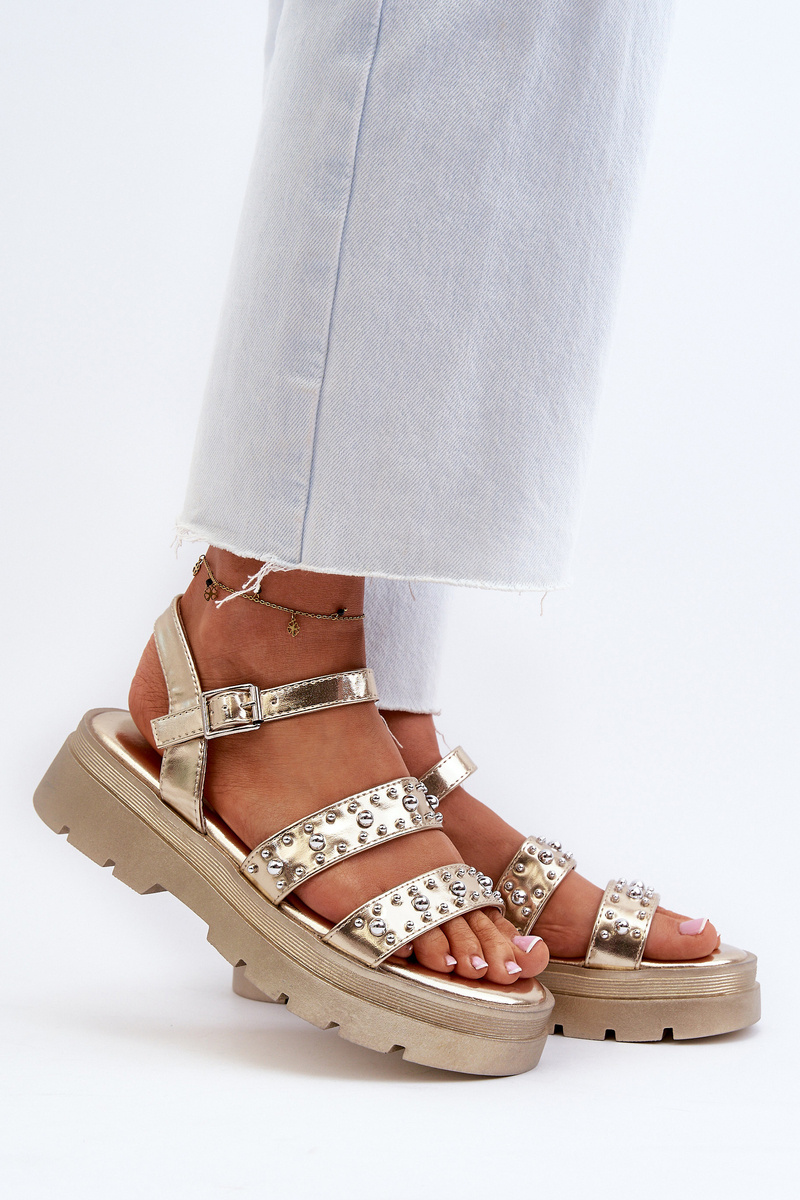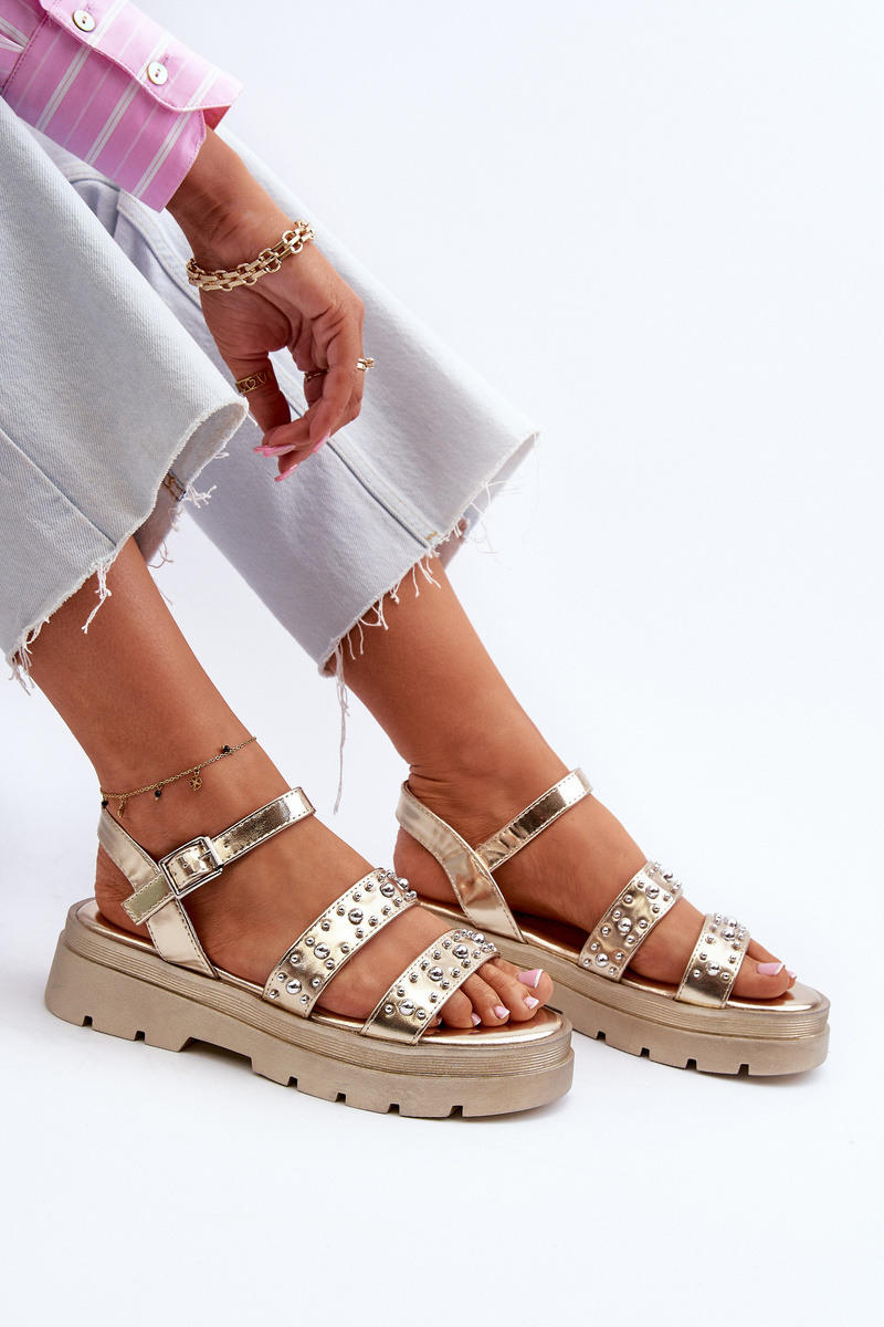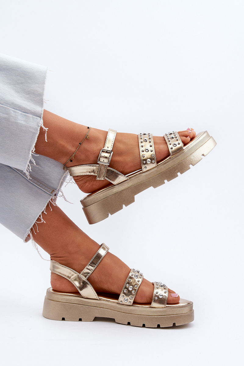 Damskie Zdobione Sandały Eko Skóra Złote Arcida