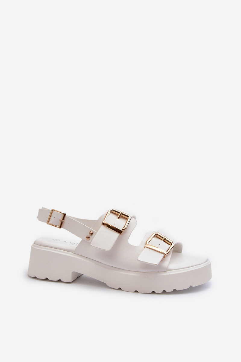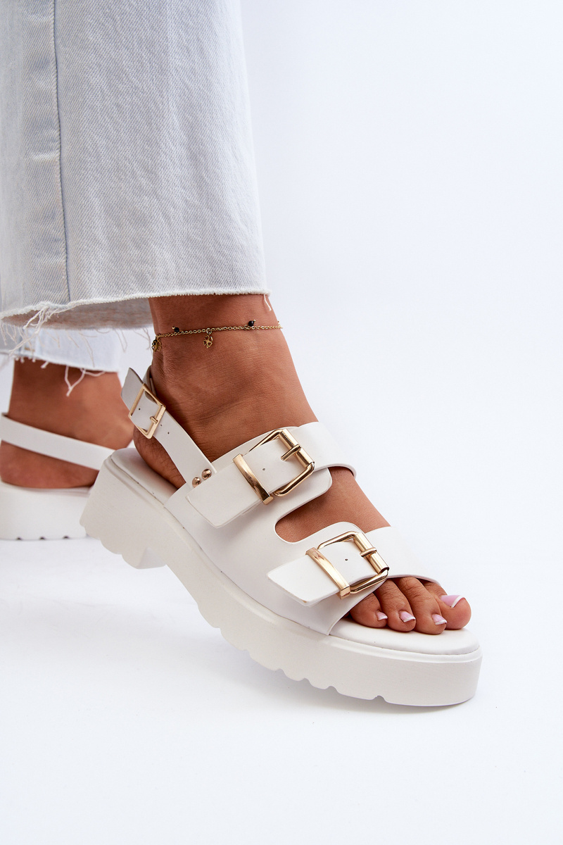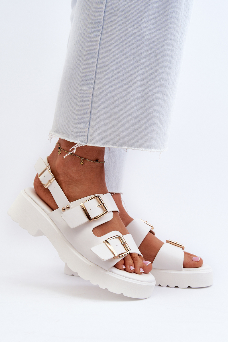 Sandały Damskie Z Klamrami Eko Skórzane Białe Konanttia