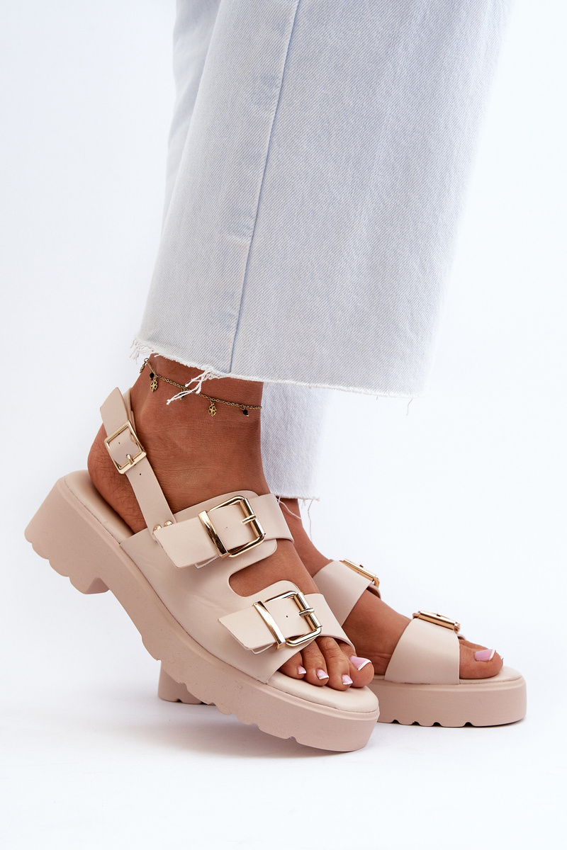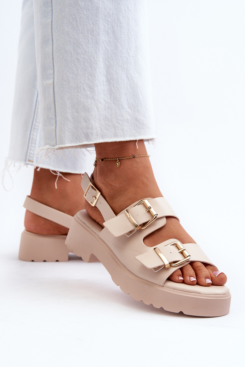 Sandały Damskie Z Klamrami Eko Skórzane Beżowe Konanttia