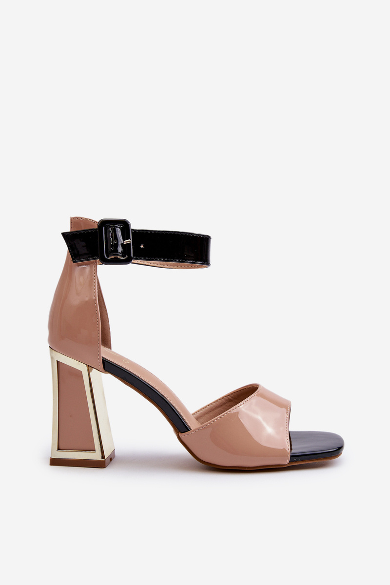Lakierowane Sandały Na Słupku Beżowe Adrianu
