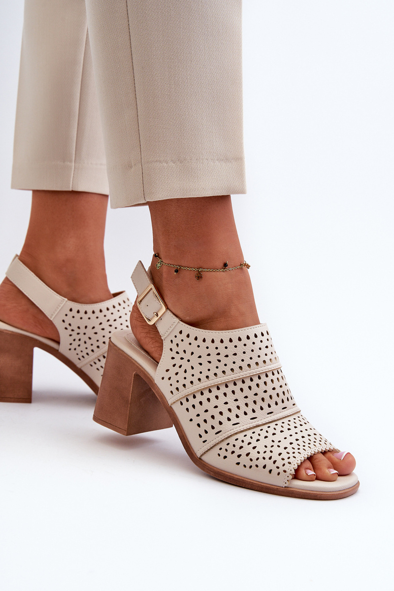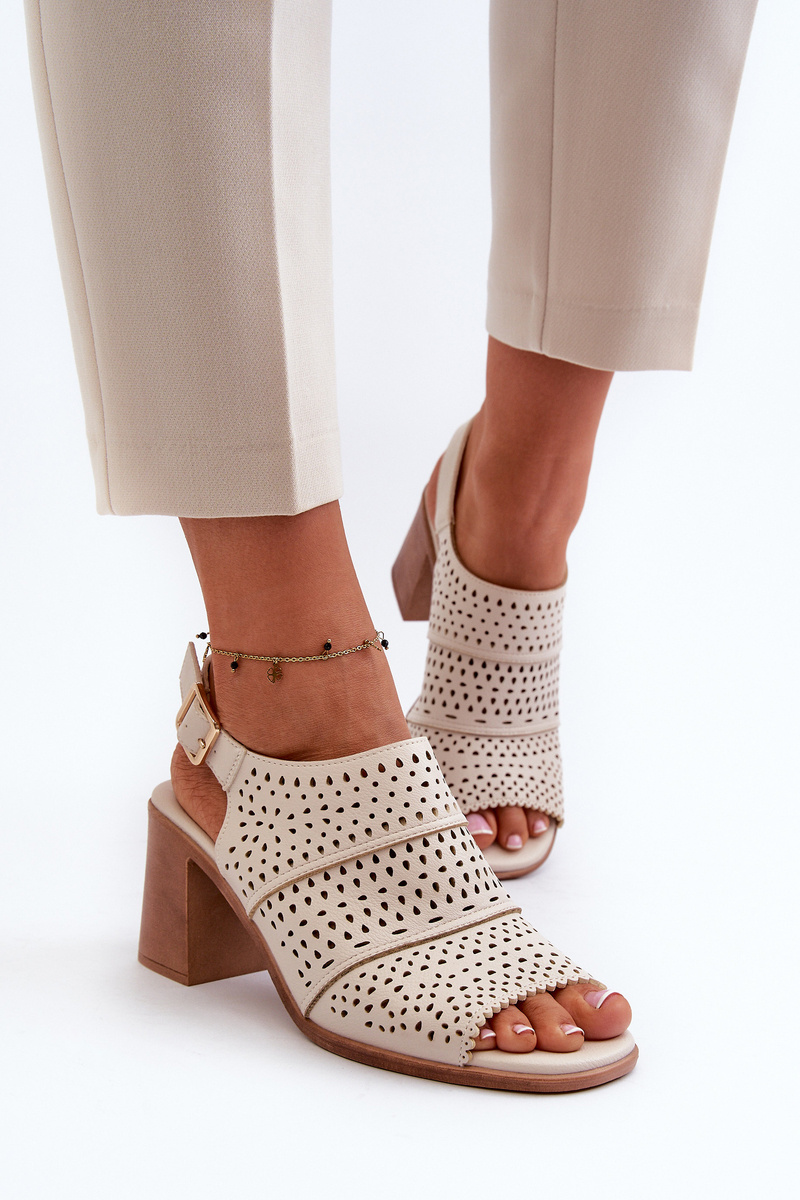Ażurowe Sandały Na Słupku Sergio Leone SK565 Jasnobeżowe