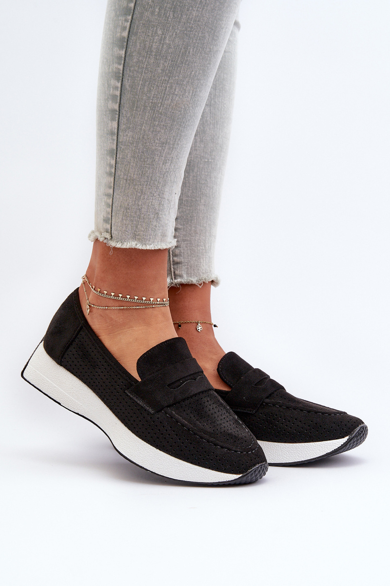 Mokasyny Damskie Na Platformie Eko Zamszowe Czarne Inesqua